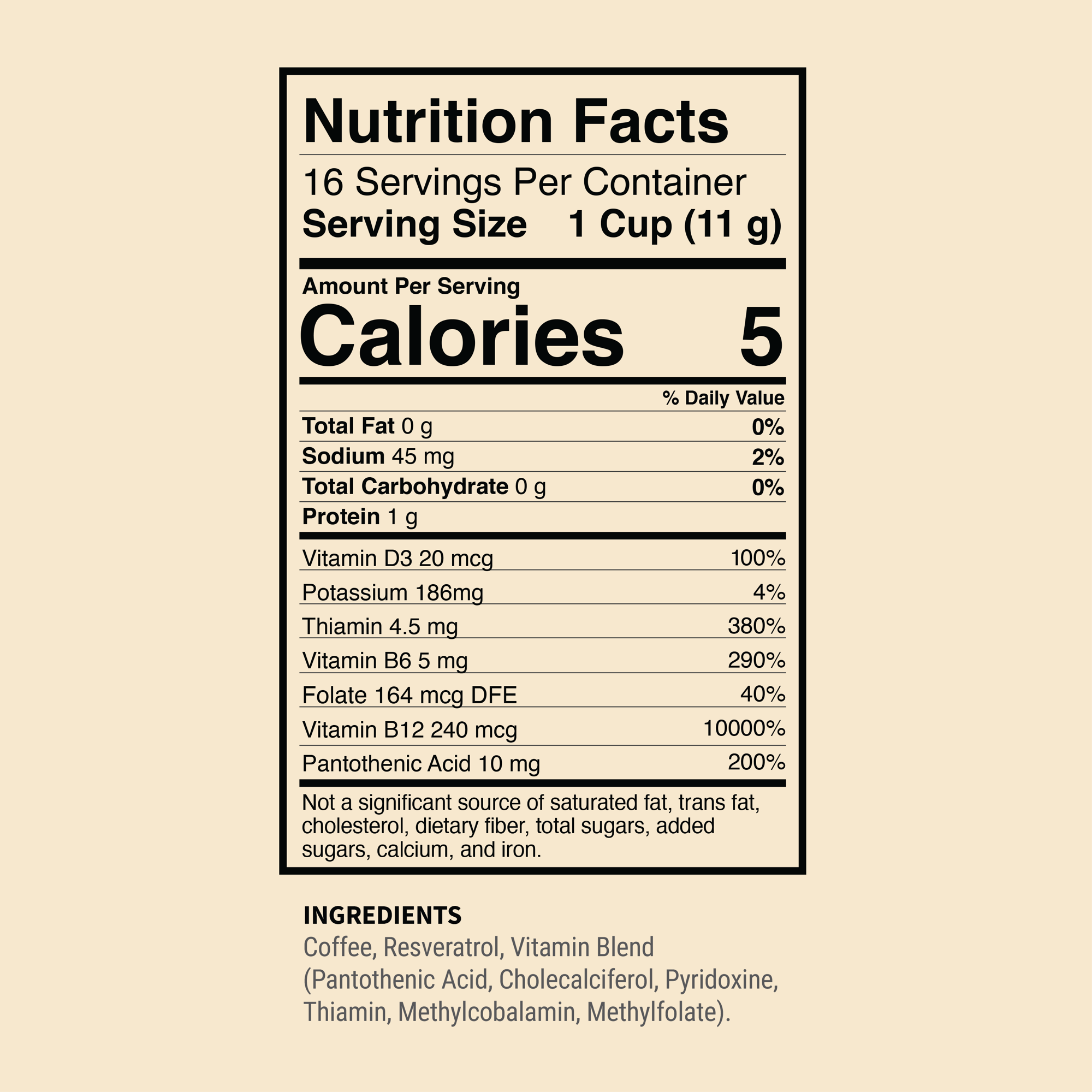 - DAILY DOSE OF VITAMINS: Each cup of coffee contains a vegan-friendly blend of vitamins and nutrients, allowing you to simplify your morning routine with one less step. Energy Light contains vitamins B1, B5, B6, B9, B12 & D3.
