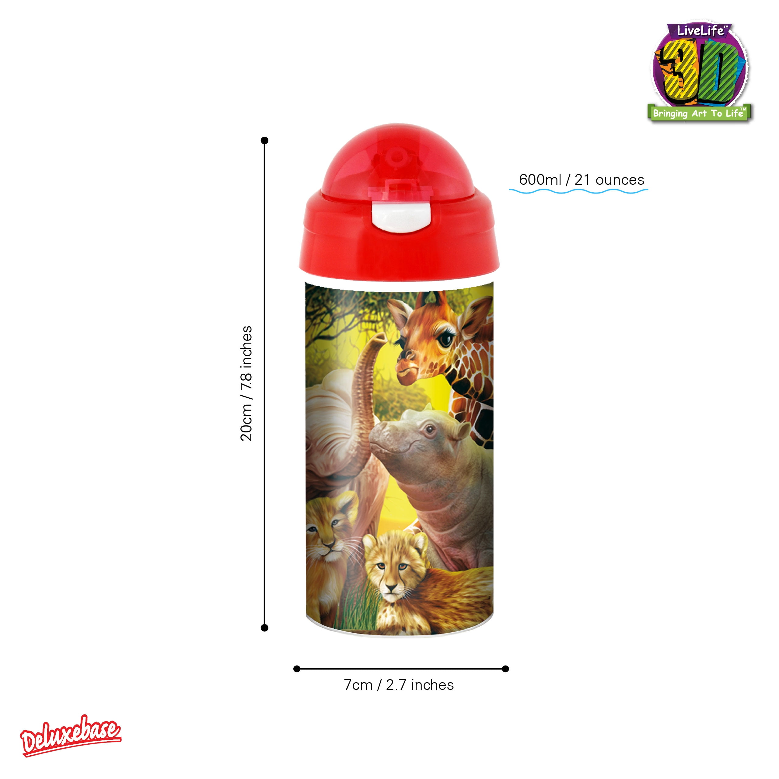 3D LiveLife Drinking Bottle – Kissing Cousins from Deluxebase. 3D Lenticular Safari Animal Water Bottle with Straw. 20oz kids water bottle with original artwork from renowned artist, Michael Searle