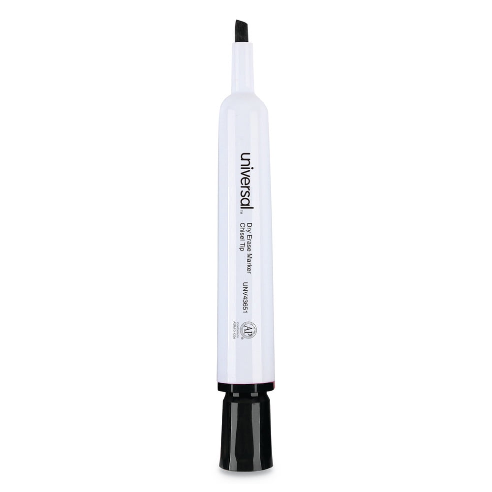 Universal Dry Erase Marker, Chisel Tip, Black, Dozen -UNV43651, Non washable