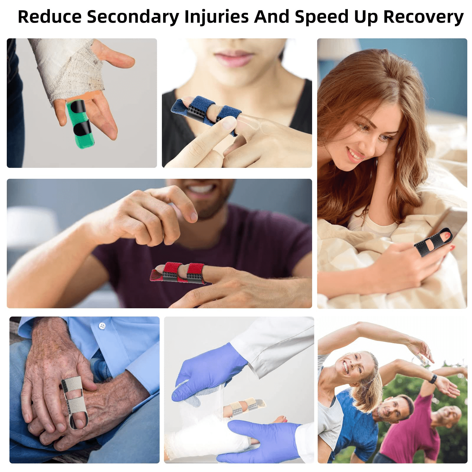 6pcs Finger Splint, WOVTE Trigger Finger Splint with Belt-in Aluminum Splint & Adjustment Tape Stick, Finger Brace to Recovery, Sports Injury, Finger Broken, Strained, Sprained, for Thumb, Index, Midd