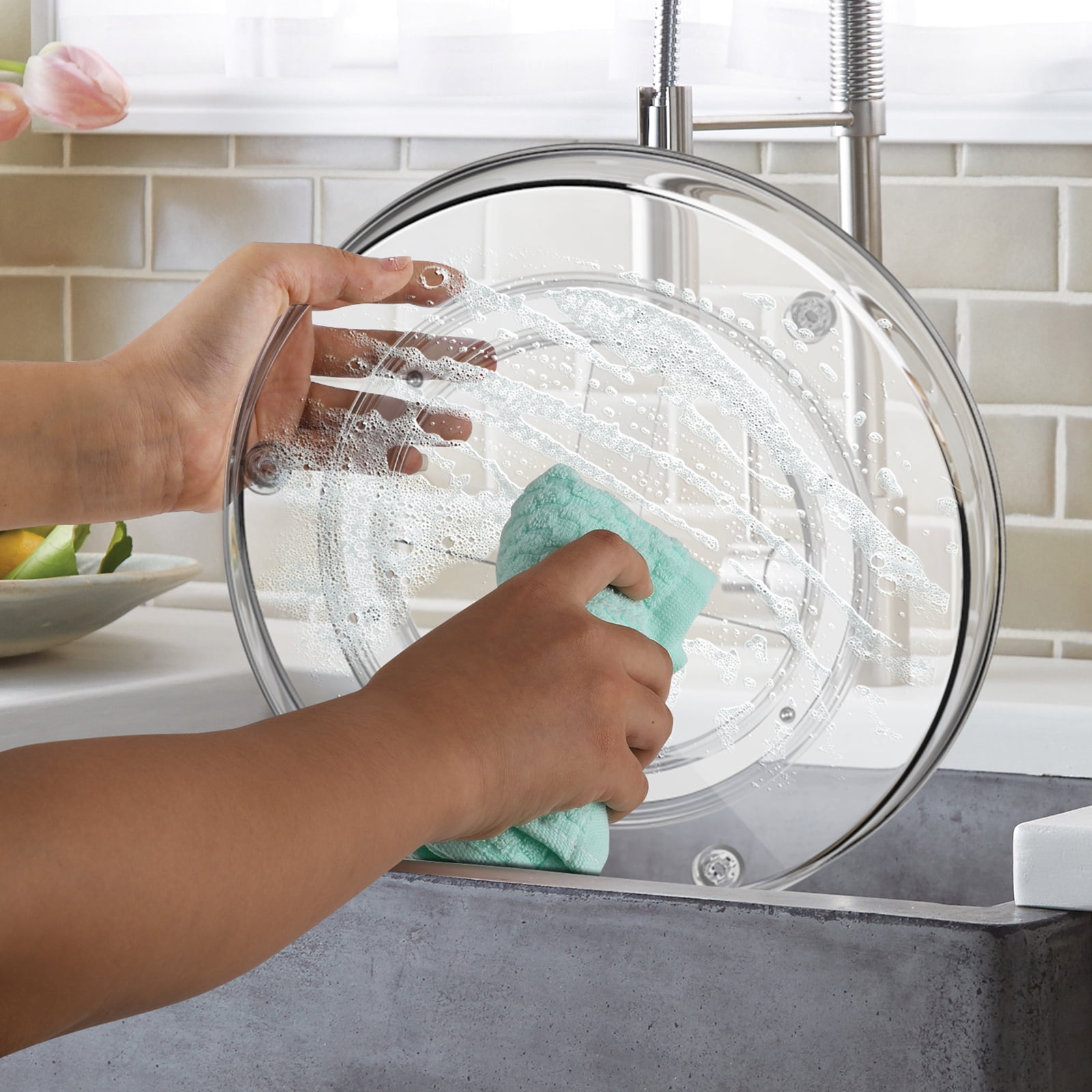 Koovon 2 Pack Lazy Susan Turntable Organizer, Round Plastic Clear Storage Container Bins for Kitchen, Cabinet, Pantry