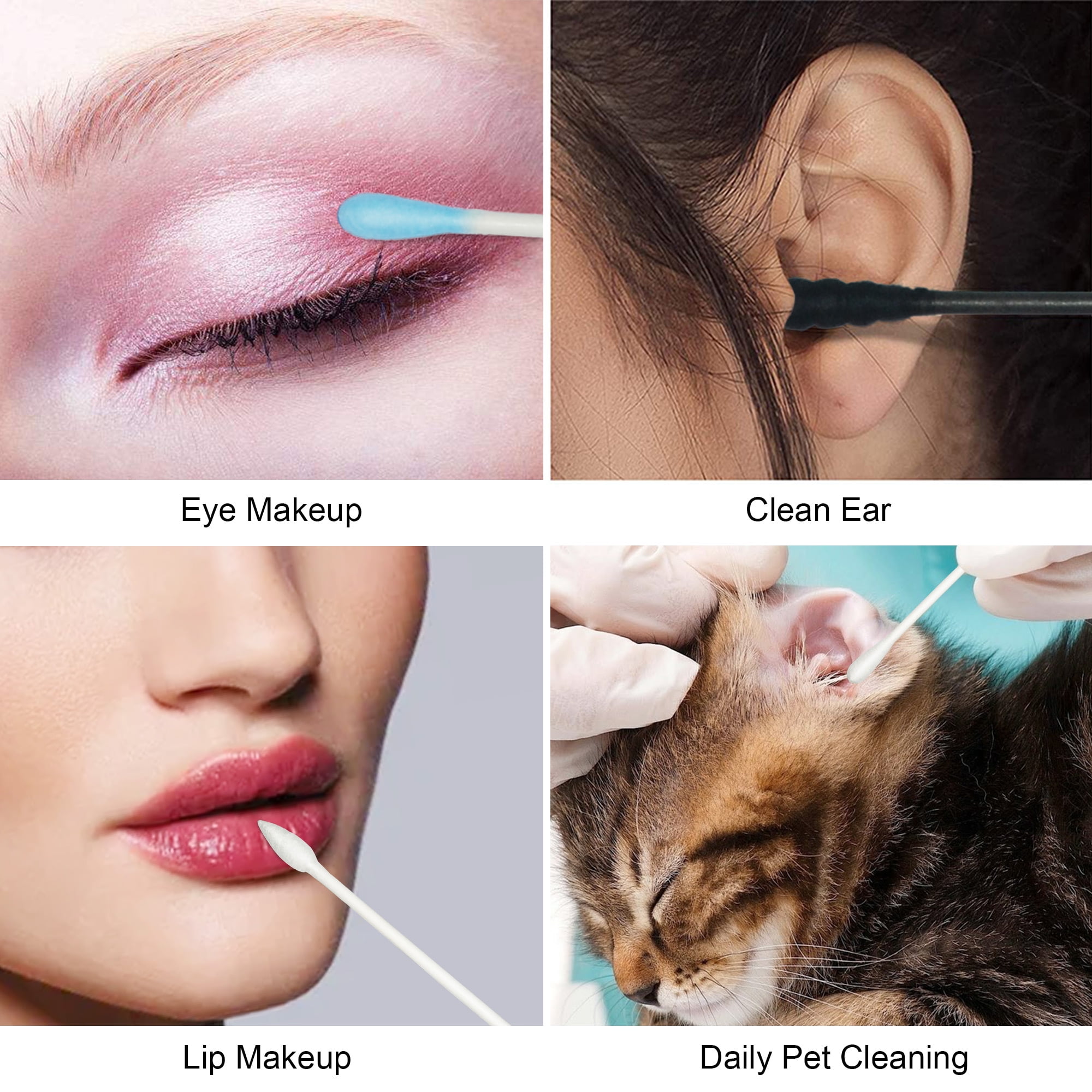 HOMEFOX 400 Count Blue Cotton Swab Qtip Ear Buds Organic Spiral & Round Tip