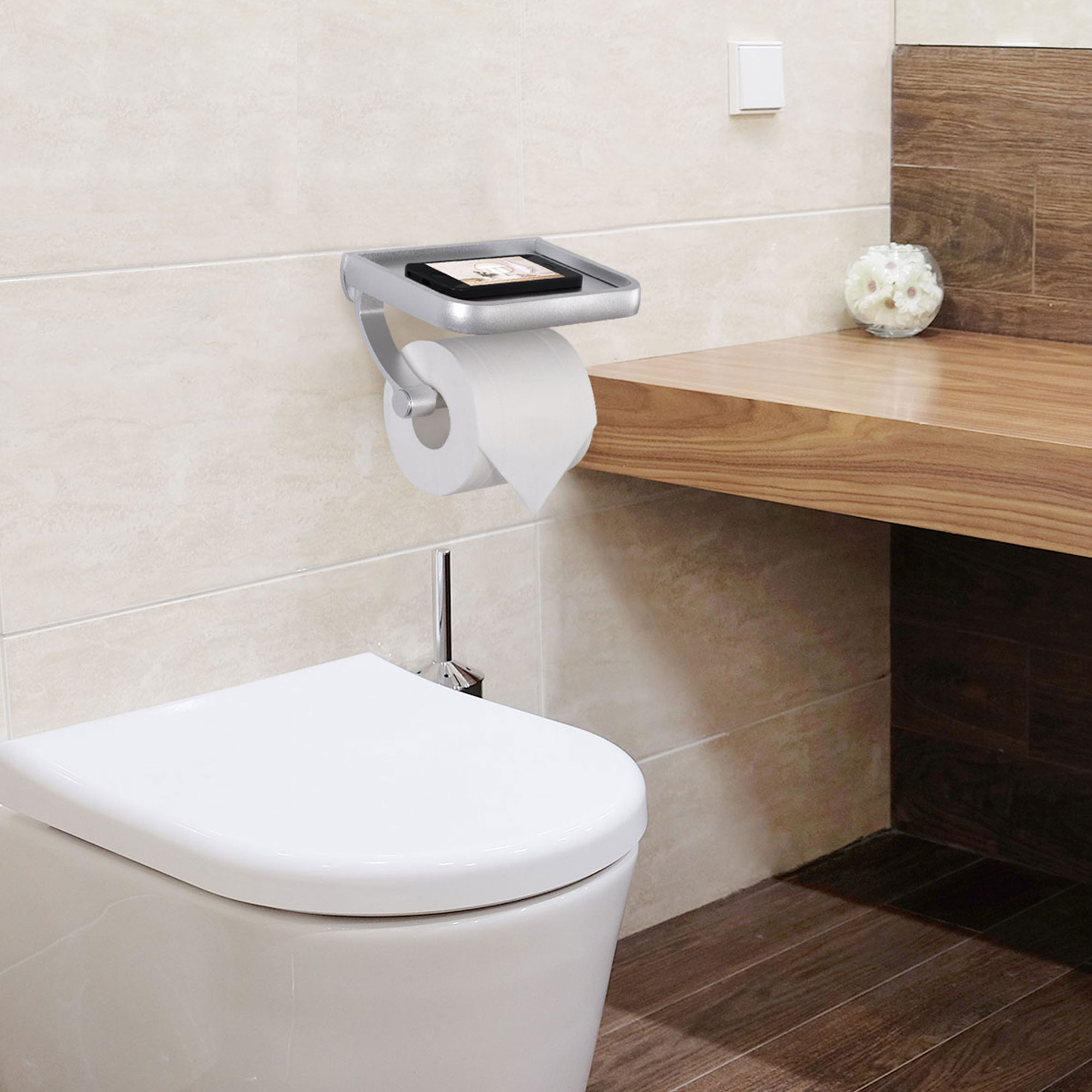 Uxcell Toilet Paper Tissue Holder with Phone Shelf Aluminum Alloy Matte Silver