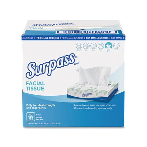 Facial Tissue 2-Ply, White, Flat Box, 125/Box, 10 Boxes/Carton