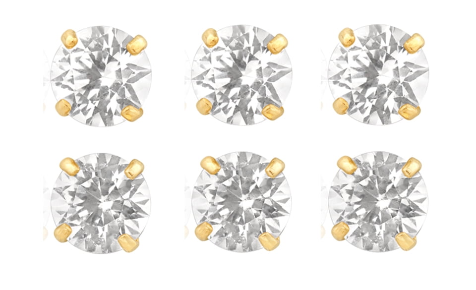 Paris Jewelry 18k Yellow Gold 4Ct Round White Sapphire Set Of Three Stud Earrings Plated