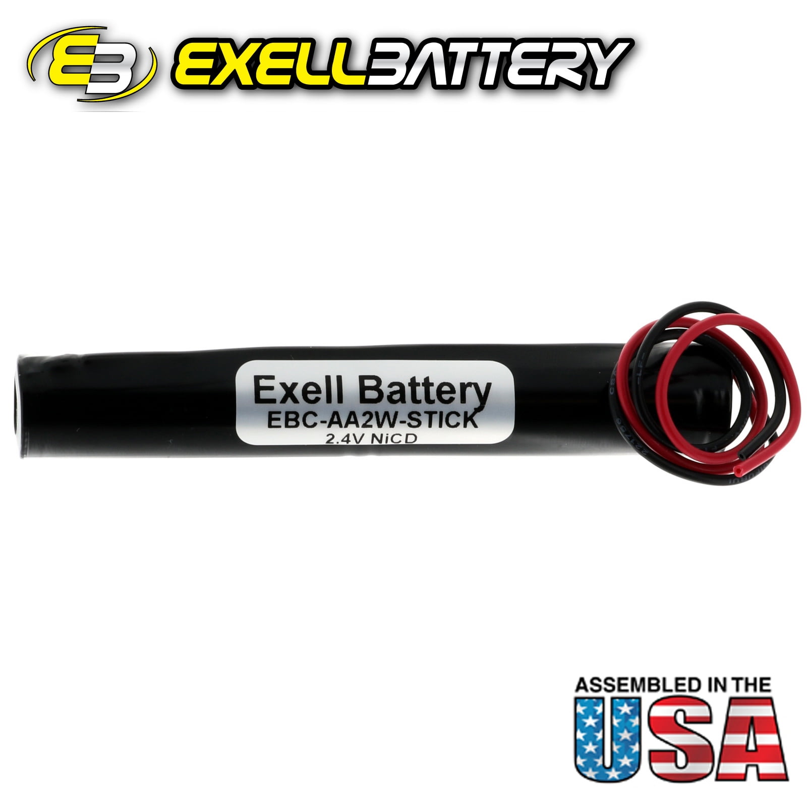 Exell 2.4V 1000mAh NiCd Stick w/ Wire Leads for Communication Equipment, Lighting, Power Tools and more.