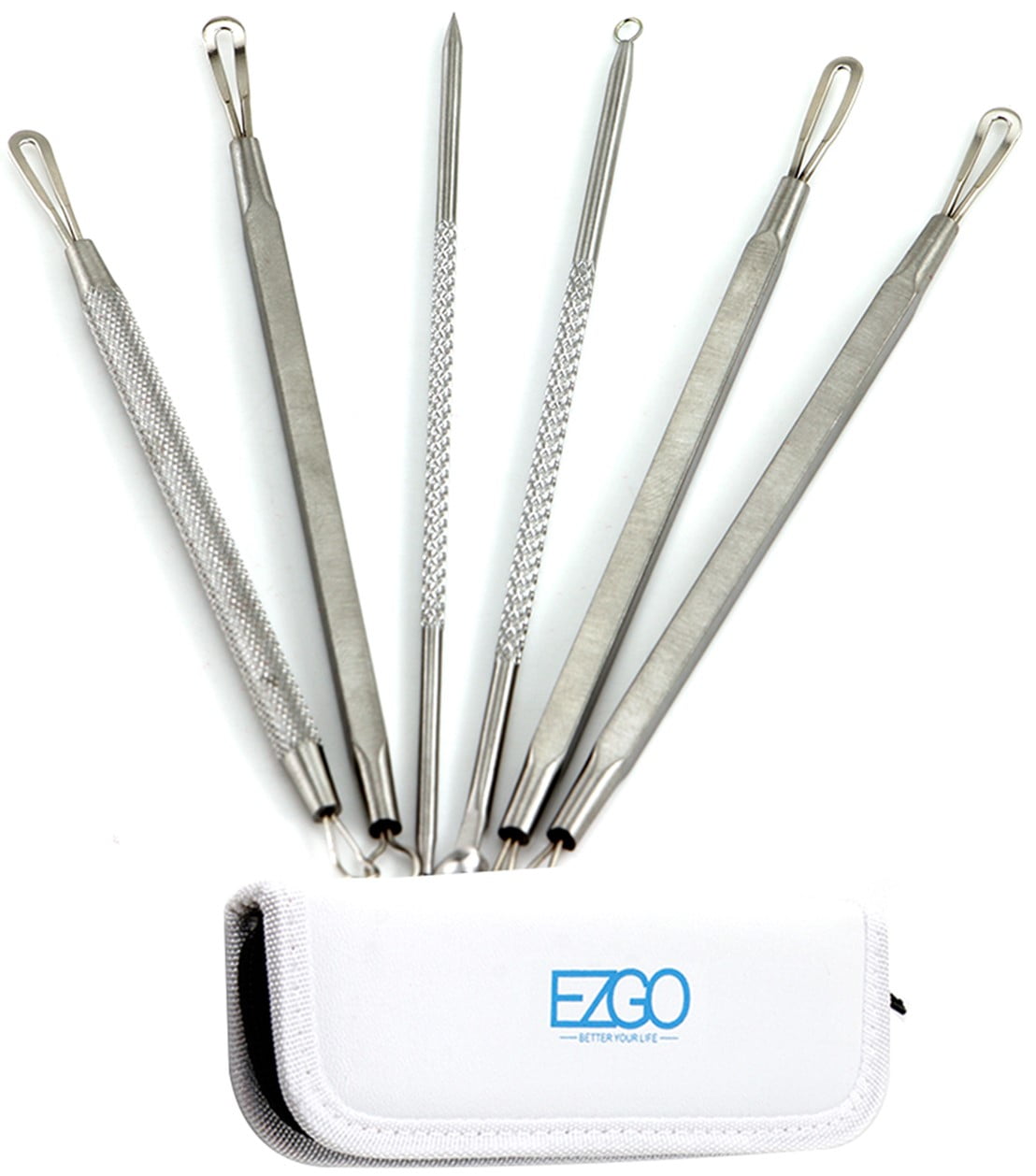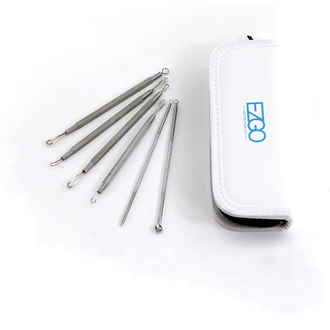 Get clearer skin the professional way with the Blackhead Extractor Tool Kit. Dermatologists use sterile tools to help remove blemishes, pimples, blackheads and whiteheads, effectively extracting without cross-contamination. This pimple blemish remover kit features five tools inspired by dermatologist designs to remove imperfections, with special tools to treat the most common skin concerns. Double looped tools, needle extractor tool, comedone extractor tool and extractors for every size and shape of blackheads and whiteheads. A stainless steel build with precision designs ensure optimal balance, comfort and performance for visible results. The stainless steel tools can be autoclaved at home for even greater sterility. The stainless blackhead remover tools are neatly contained in a leather zipper case for effortless portability and compact storage.