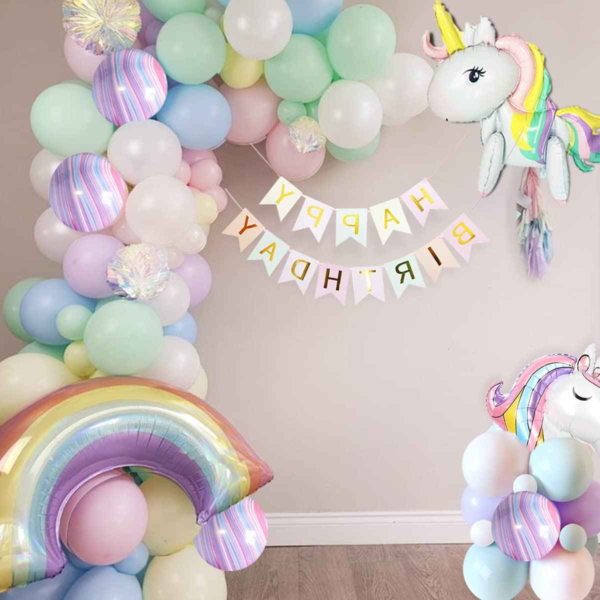 - Our unicorn theme party balloons supports air and helium, helium can make the balloon float, it is very easy to decorate. The pastel unicorn birthday decoration kit provide a great party decoration for your lovely girl