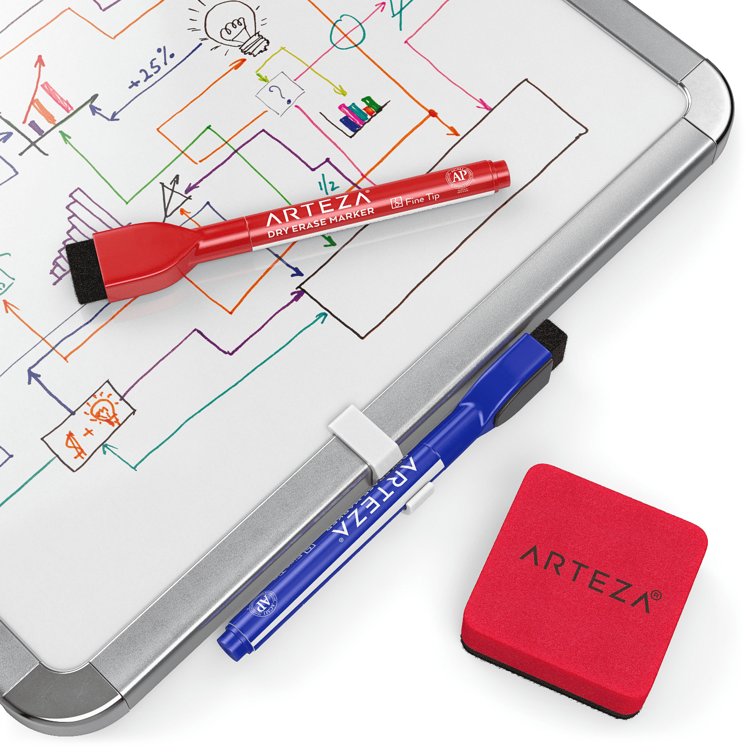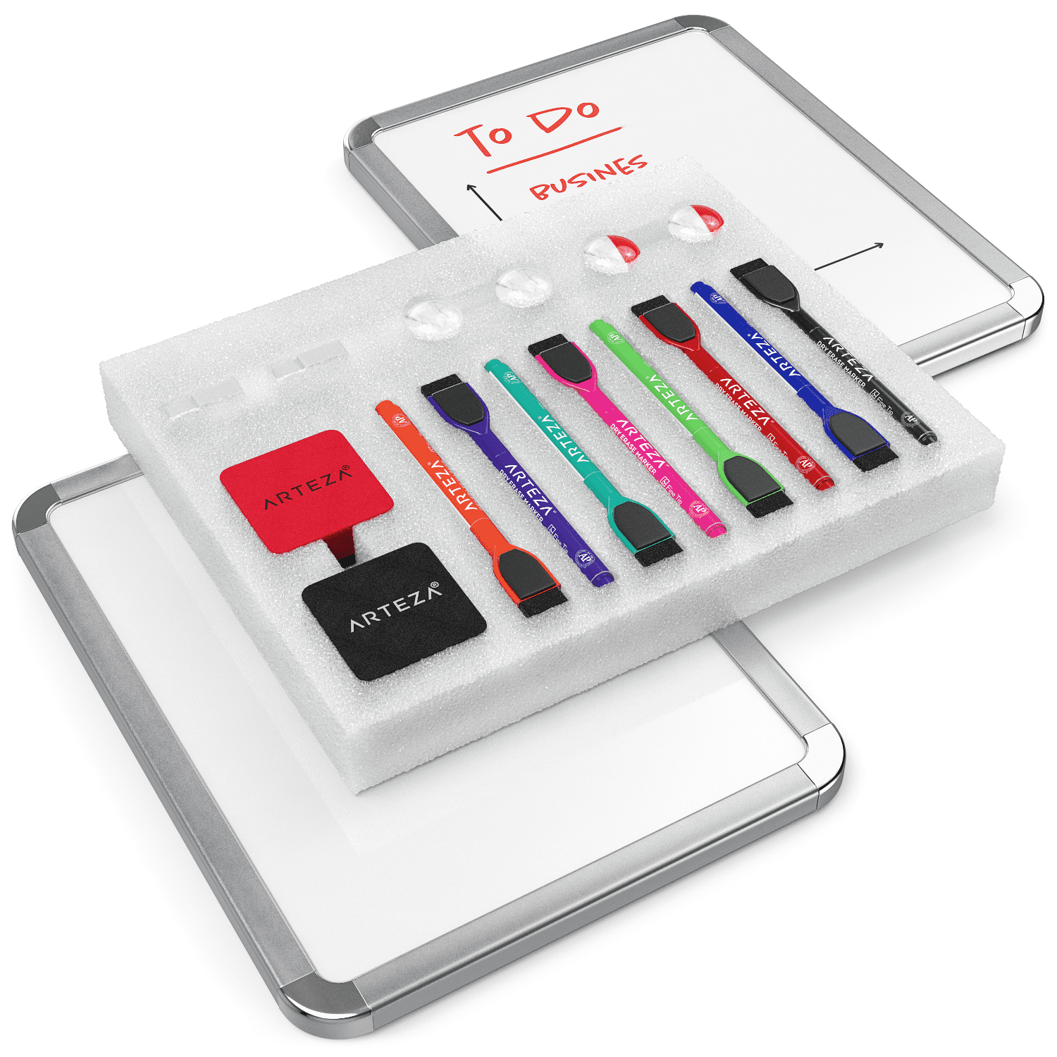 Arteza Premium Set of 2 Framed White Magnetic Dry Erase Lapboards (8.5’x11′), 16 Markers with Cap Erasers, and Magnets