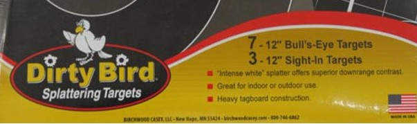 Practice your shooting with the highly visible and versatile Birchwood Casey Dirty Bird Splatter 12 Target Set. This set includes 7 12 bulls-eye targets and 3 12 sight-in targets so you can practice your shooting at different ranges. High visibility intense white splatter ensures you’ll be able to see the results of your shot from long distances, and adds a satisfying effect to target practice. These targets are perfect for indoor and outdoor use and made with heavy-duty tag board. Improve your accuracy and see the results immediately with Birchwood Casey Dirty Bird Splatter 12 Target Set. 8 oz.