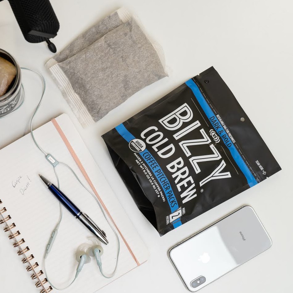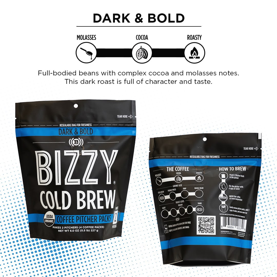 Bizzy Organic Cold Brew Coffee | Dark & Bold Blend | Coarse Ground Coffee | Pitcher Packs | 4 Count | Makes 14 Cups