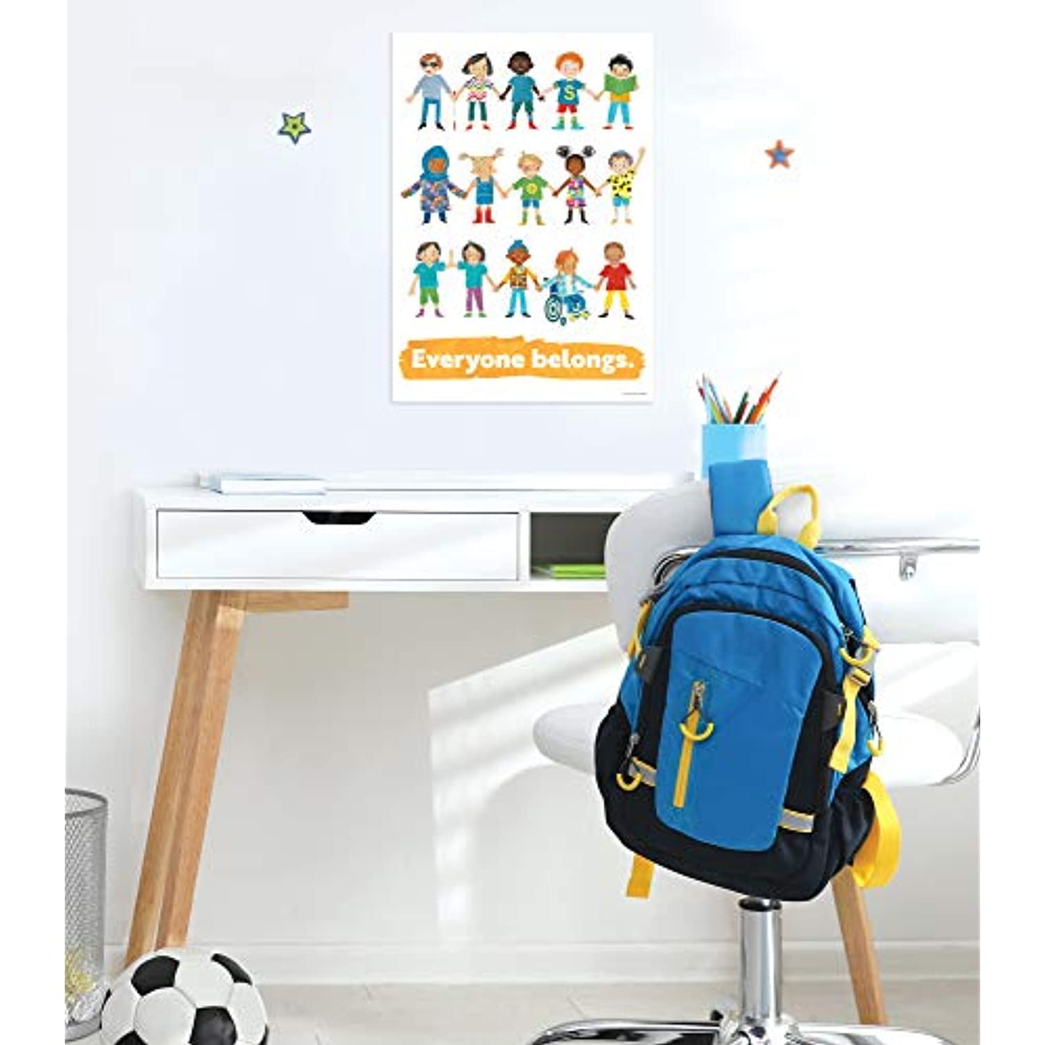 Encourage a sense of community and celebrate kindness, inclusivity, and diversity with the All Are Welcome Everyone Belongs Poster. Designed to inspire self-confidence and a send of kindness and community for all students, this poster presents a powerful message: Everyone Belongs. Measuring 13.37" x 19", this inspirational poster is an eye-catching addition to your decor. Children and adults alike have fallen in love with the kids and families in the book, All Are Welcome, written by Alexandra Penfold and illustrated by Suzanne Kaufman. Based on the book, Carson Dellosa has developed a new line of decor products: the All Are Welcome collection. Now you can bring this vital message about multiculturalism and inclusivity to the walls of your home or classroom. Create a feel-good vibe wherever you are to inspire children to be better and do better. Be sure to check out coordinating All Are Welcome products to create a cohesive classroom theme.