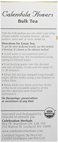 Calendula was well known to the old herbalists as a garden-flower and for use in cookery and medicine. High QualityCelebration Herbals Calendula Flowers Organic, 24 gm
