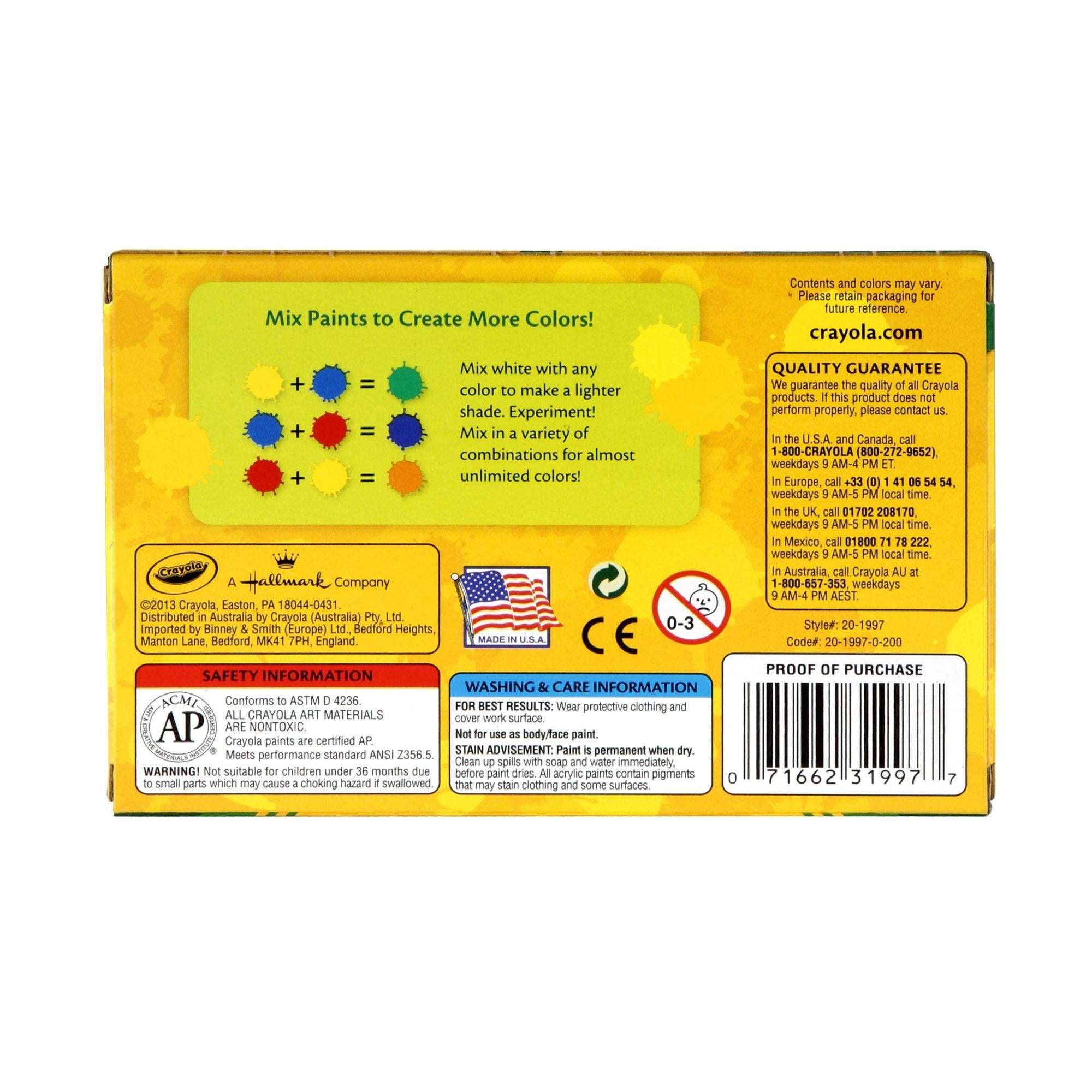 Crayola Acrylic Paint Set, Assorted Colors, Beginner Child, 6 Count