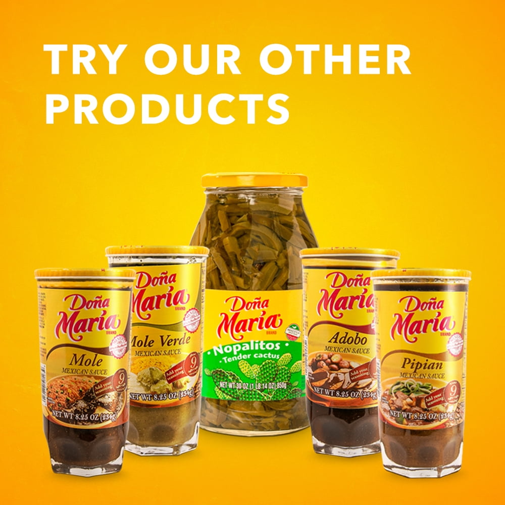 Similar to Mole Original, DONA MARIA Mole Adobo is thick, spicy, sweet, and made from a special combination of roasted spices, ancho chiles, pasilla chiles, and peanuts. Just add a few ingredients, and you’ll have a robust, authentic sauce that goes great with fish, vegetables, and more. DONA MARIA is a trademark of Herdez S.A. de C.V. sociedad anonima.