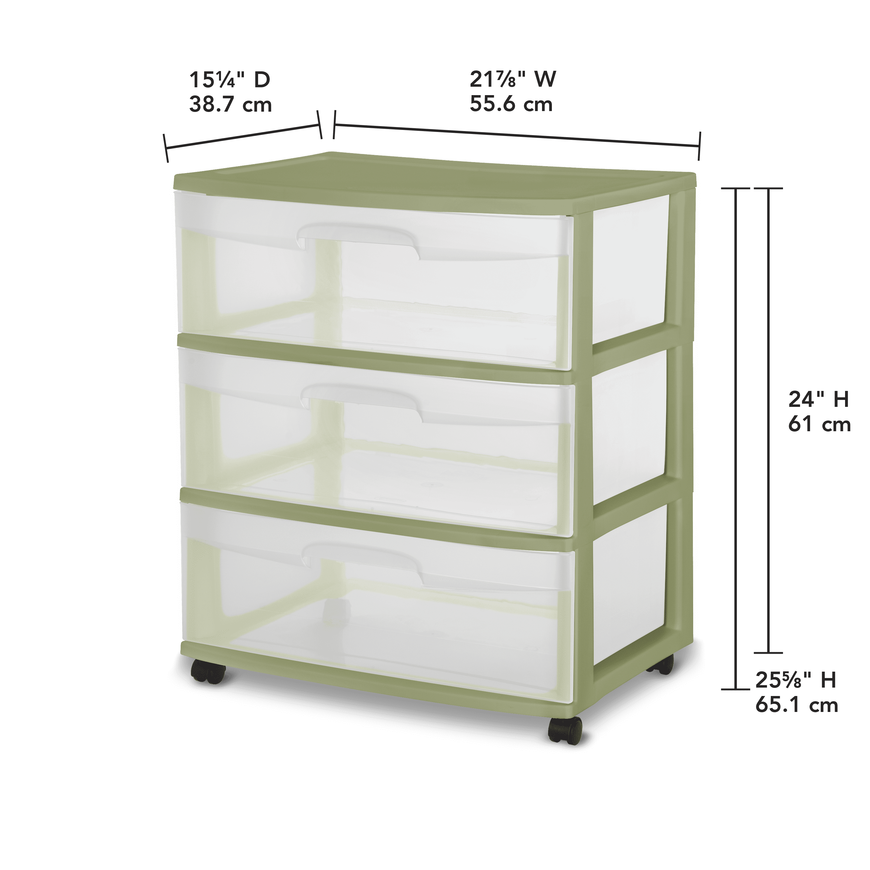 STERILITE 3 DRAWER WIDE CART-SAGE LEGUME, C-THRU W/SAGE LEGUME FRM&CVR