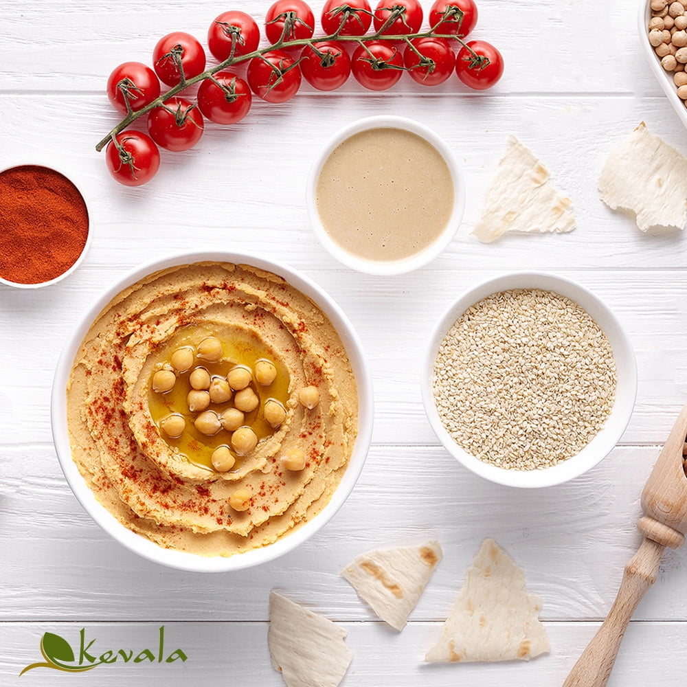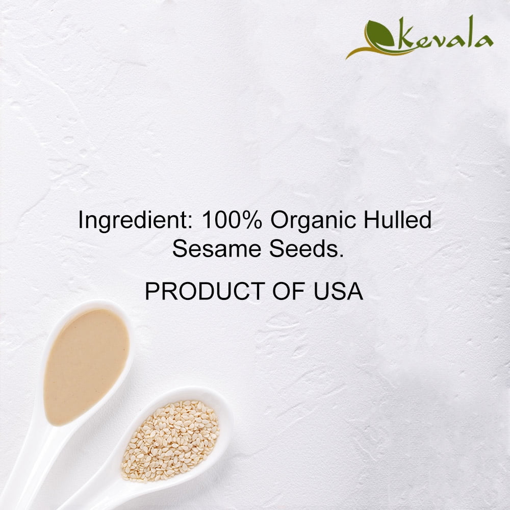 Kevala – Organic Sesami Tahini – 56 oz. (1587g)Kevala Organic Sesami Tahinii is made only with the finest sesame seeds. These are roasted and stone ground to obtain a delectable creamy texture. Try Kevala’s organic sesami tahini in your favorite dished such as, hummus, dressings, sauces, baba ghanouj, baking, desserts, and more! USDA Organic Tahini, Kosher Gluten Free, No GMOs,Our sesame seeds are roasted and stone ground to obtain a delectable creamy texture.