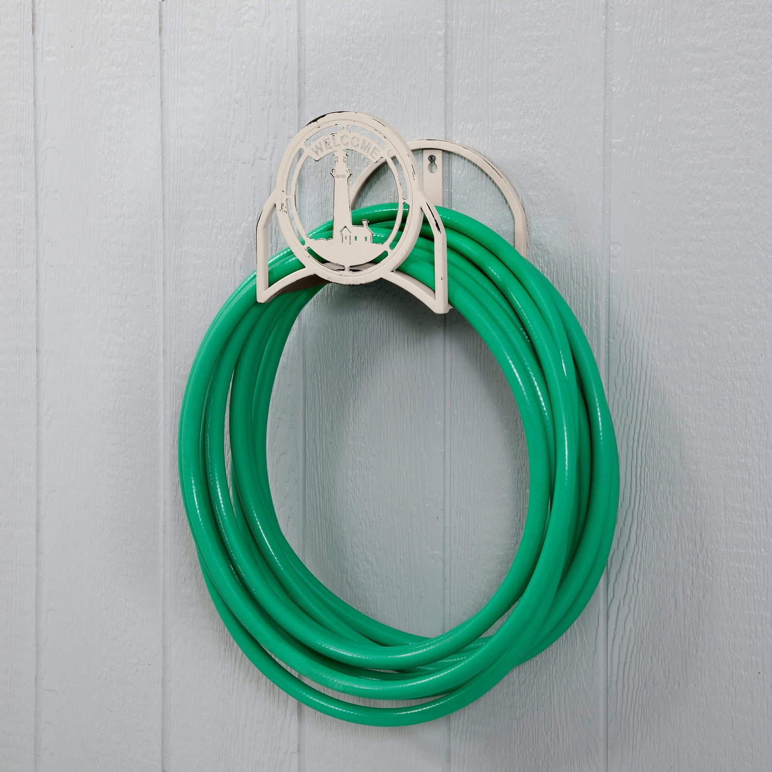 The Liberty Garden Lighthouse Hose Hanger offers an attractive alternative for storing your garden hose neat and ready to use. The nautical design will compliment most outdoor décor. This wall mount hose hanger holds up to 125-feet of 5/8-inch garden hose. Built for years of reliable service with its steel construction and a powder coat finish that is weather resistant. Installation is easy with our key-slotted mounting system.