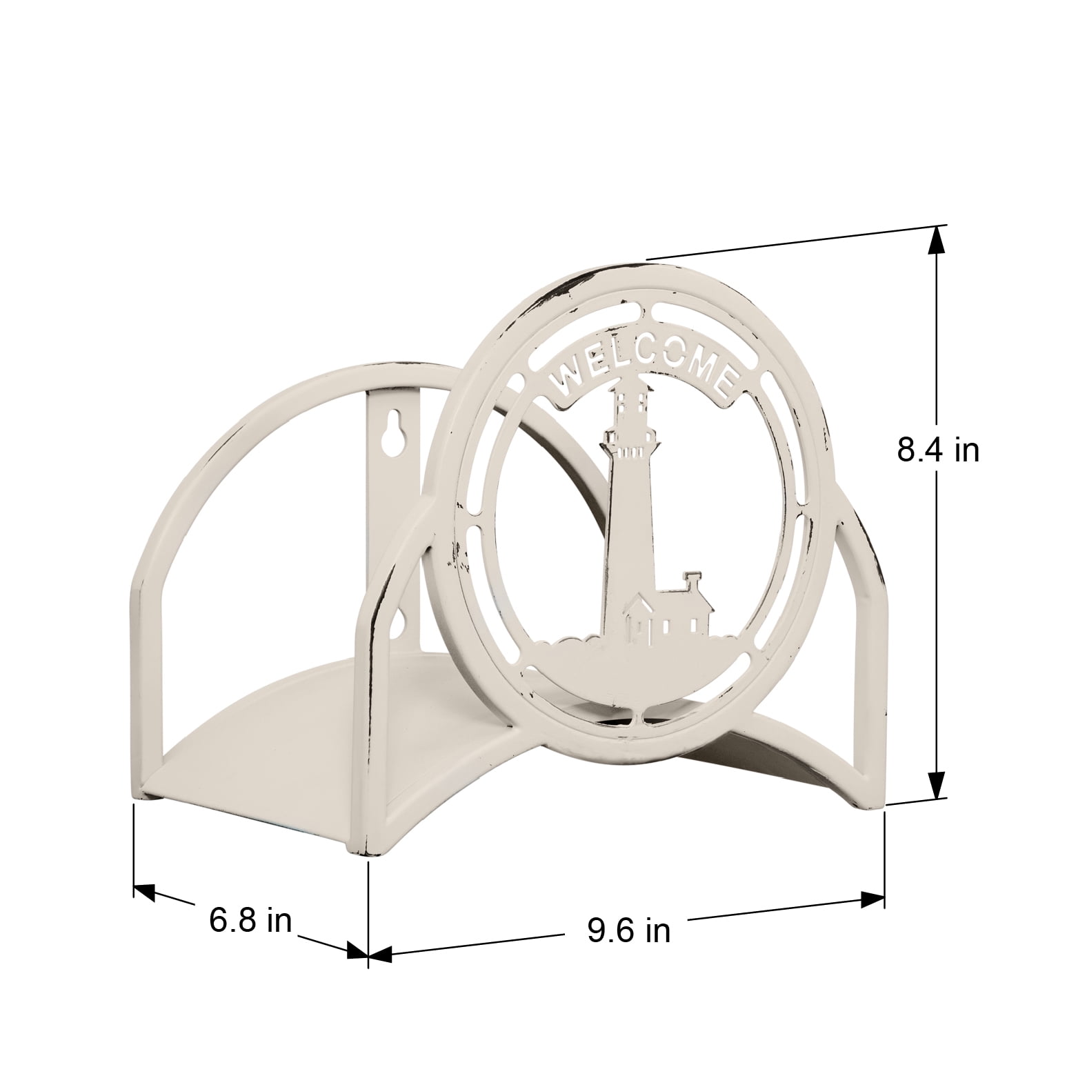 - Attractive nautical design garden hose hanger featuring a lighthouse with white powder coat finish
