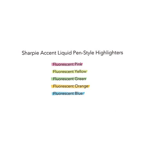 Easily identify important notes with Sharpie Liquid Accent Highlighters. These liquid highlighters feature vibrant inks that quickly dry to a bold, see-through finish. The easy-glide fine chisel tip applies ink smoothly and consistently, while the integrated loop makes it easy to attach the highlighter to a binder or bag. Colors: Fluorescent Yellow Color Family: Yellow Tip Type: Chisel Retractable: No.