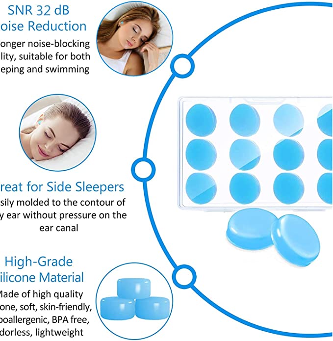 Mpow Ear Plugs, 6 Pairs Super Soft Silicone Ear Plugs, 28dB SNR Comfortable Ear Plugs, Noise Reduction Hearing Protector, for Sleeping, Swimming, Studying, Concerts, Loud Events