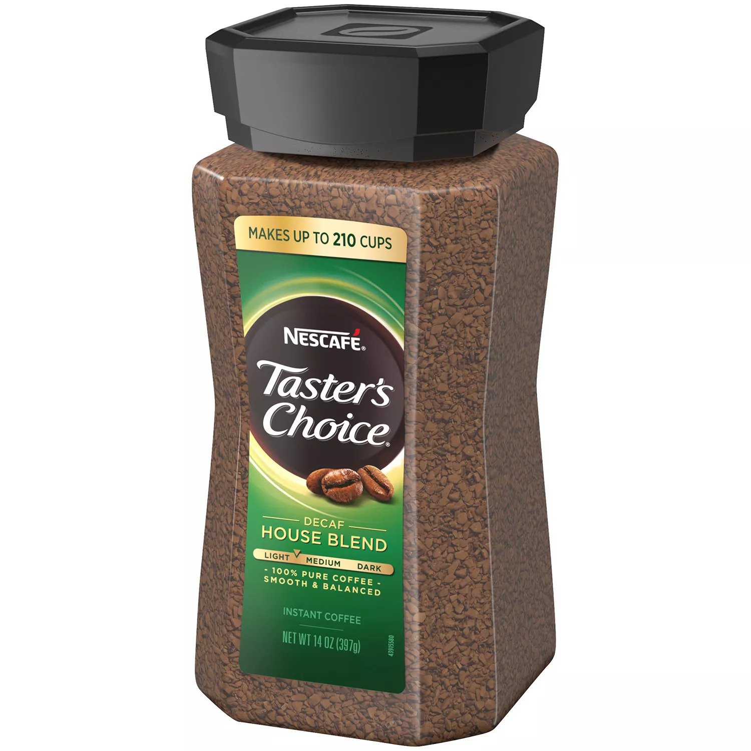 NESCAFE Taster’s Choice Decaf House Blend Instant Coffee (14 oz.). Taster’s Choice decaf instant coffee delivers the smooth, well-balanced flavor of Nescafé’s signature House Blend without the caffeine. Glass jar locks in freshness and aroma. Decaffeinated instant coffee is 99.7% caffeine-free. Well-crafted coffee made simple: just follow the desired cup size instructions, add hot water, stir and enjoy. Medium-light roastNESCAFE Taster’s Choice Decaf House Blend Instant Coffee (14 oz.)