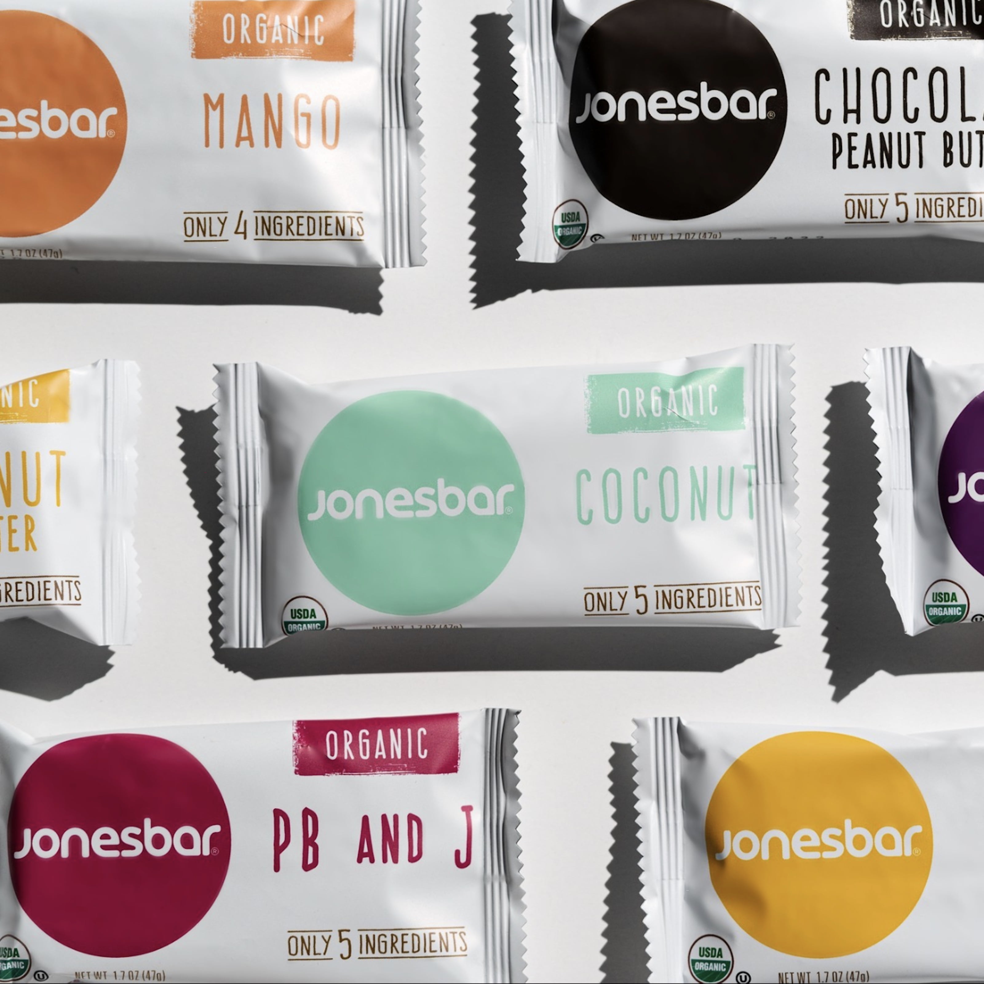 - USDA Organic. Gluten free. Vegan. Certified Organic by a Bee Organic. Eat simple. Welcome to the simple life. We believe in getting back to the basics with how you live and how you eat. Why bike 50 miles or surf all day and fuel up with energy bars full of ingredients you’ve never heard of? We can’t pronounce half the things people are packing into food nowadays, so we just left all that extra stuff out. Each Jonesbar consists of a handful of organic ingredients, which we conveniently list on the front of the packaging for you. We want you to be able to pick up any of our bars and instantly know you’re making a solid choice. So, whether you’re trying to snack right during a long day at the office or training for your next marathon, we got you covered. Enjoy. Taylor Jones. jonesbar.com.