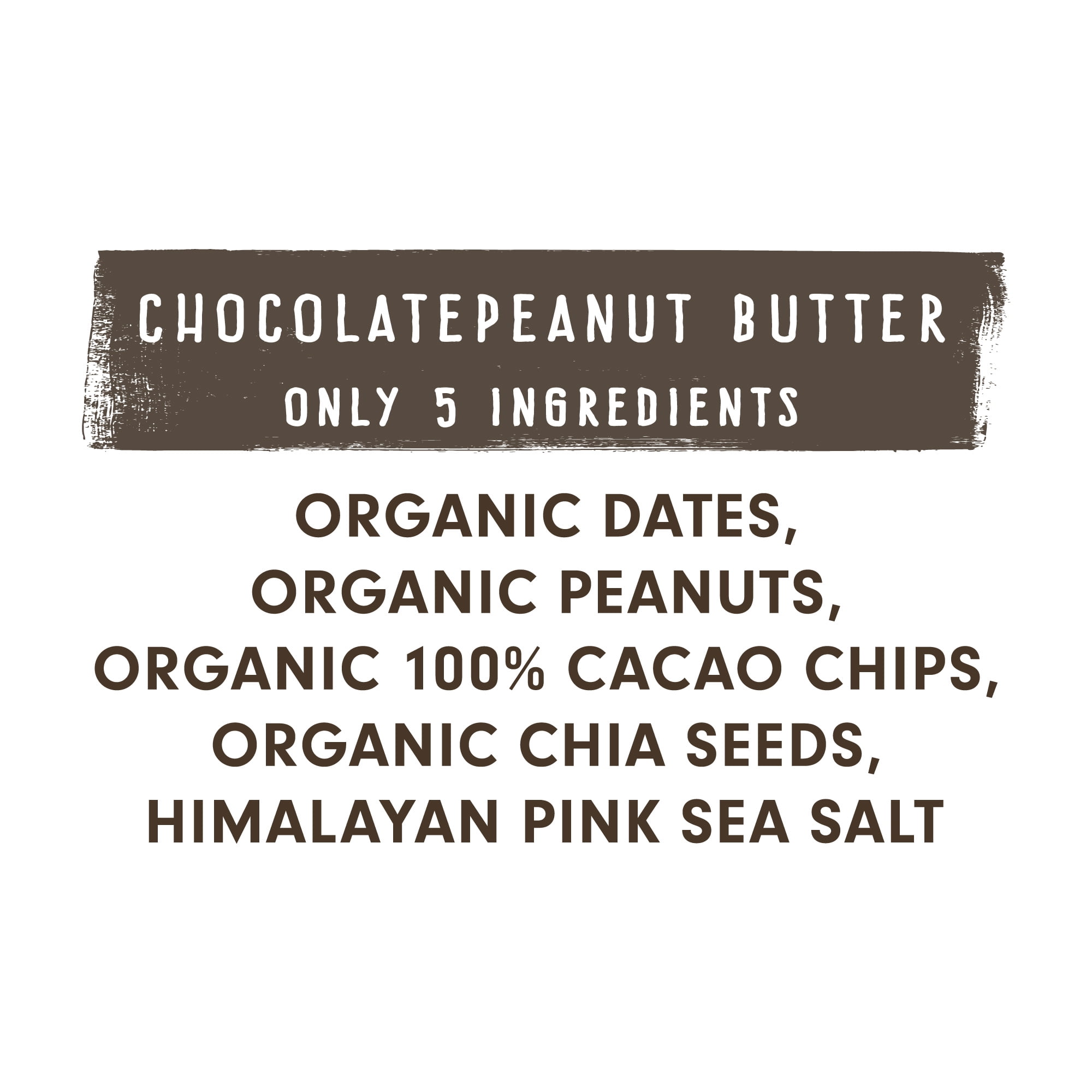 Nothing goes better together than Chocolate and Peanut Butter (no hard feelings PB+J). The only thing that could make this situation better is a hot cup of coffee. We want to get back to the basics with our eating and encourage healthy living, so our handmade bars are a healthy snack option you can rely on. Certified Organic, Certified Kosher, gluten free, vegan, soy free, no sugar added and no fillers — welcome to the simple life! Only 5 Ingredients: Organic Dates, Organic Peanuts, Organic 100% Cacao Chips, Organic Chia Seeds, Himalayan Pink Sea Salt