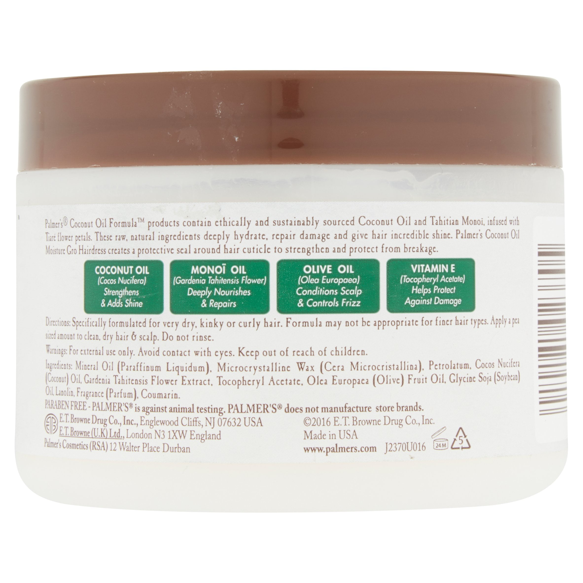 Palmer’s Coconut Oil Formula Moisture Gro with Vitamin E, 8.8 Ounces EachA blend of pure coconut oil, olive and vegetable oils, vitamin E helps end splitting, breaking and dryness. Gives hair a glossy sheen and protects from damage.