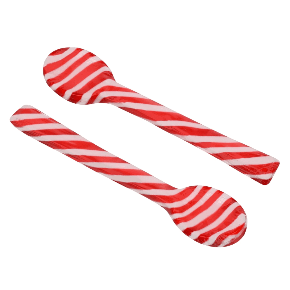 Stir in some traditional holiday flavor. Traditional candy cane flavor and striping has been molded into these fun peppermint candy spoons. Ideal for use in baking, serving up with dessert, or along side hot chocolate or coffee in coffee shops and cafes. Lot of 2 box (12 Spoons)