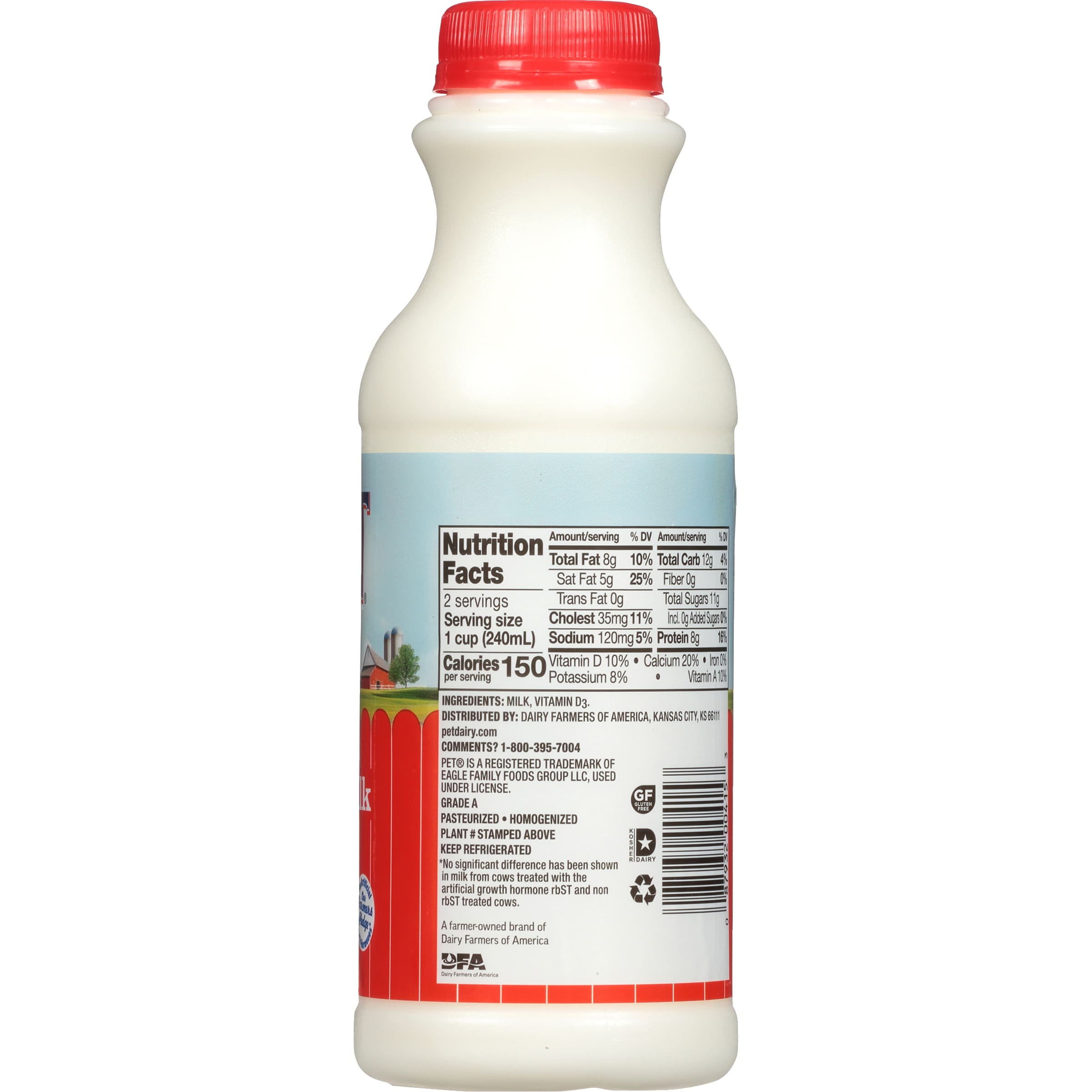PET Dairy Whole Milk with Vitamin D, Whole Milk Pint – 1 Bottle