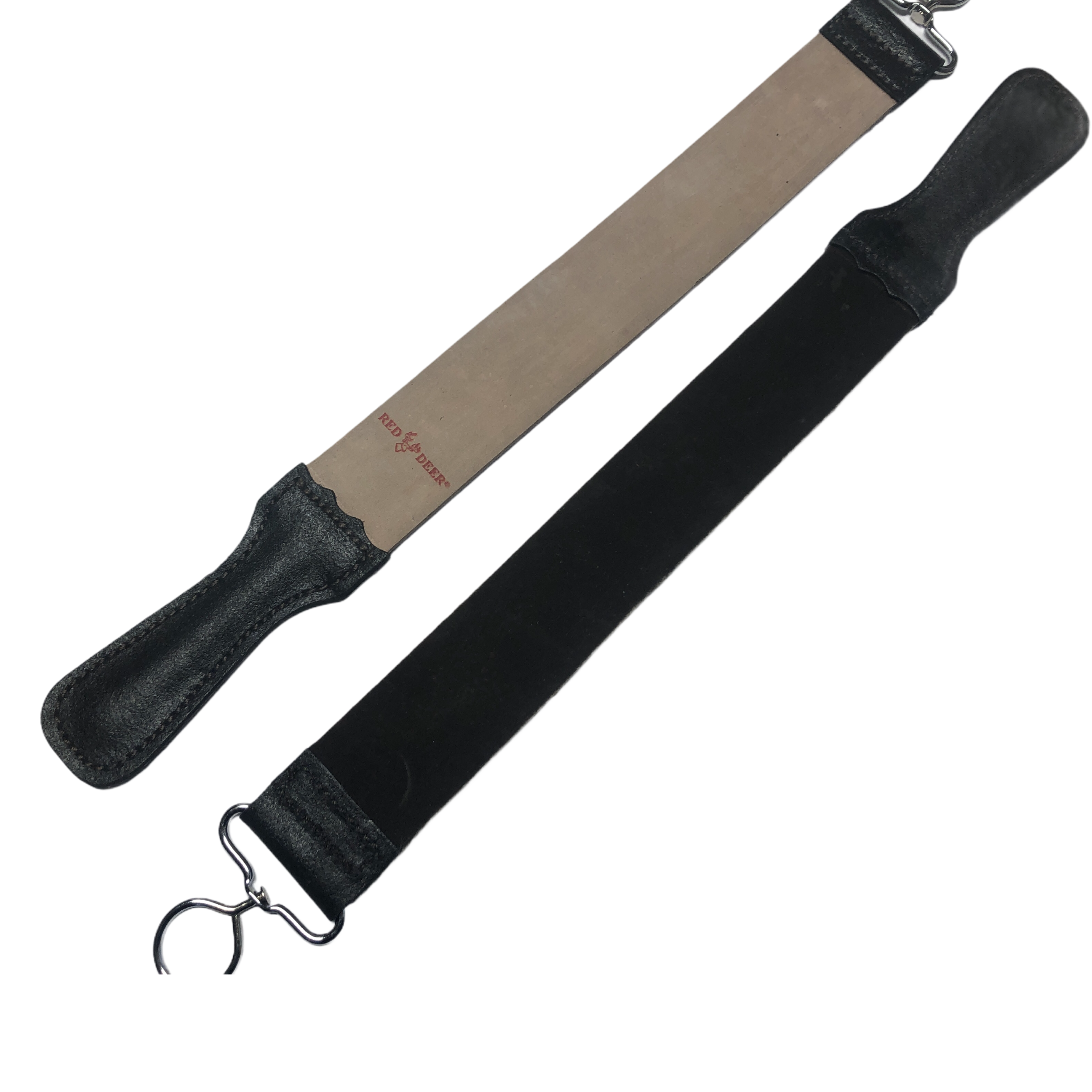 Straight Razor Features 10 Inches Overall, 3 Inch blade Straight Razor, Red Deer, Folder Super Sharp, Excellent Quality Real Stainless Steel, Heavy Duty Strop Features 100% Real Genuine Leather Well Stitched Hanging Eyelet Attached at Top Double-Sided Overall Length 20" inches 2" Inches Wide