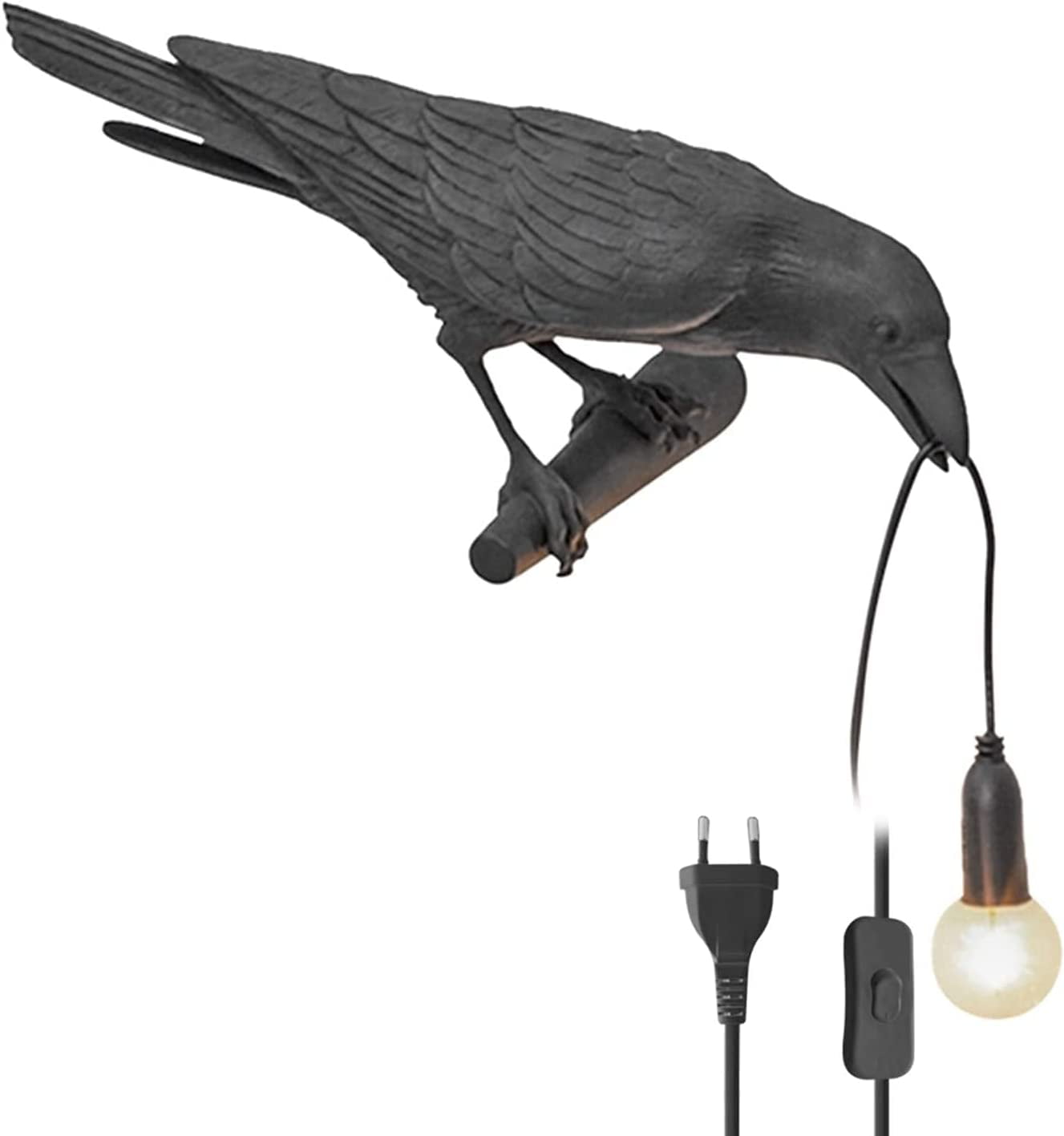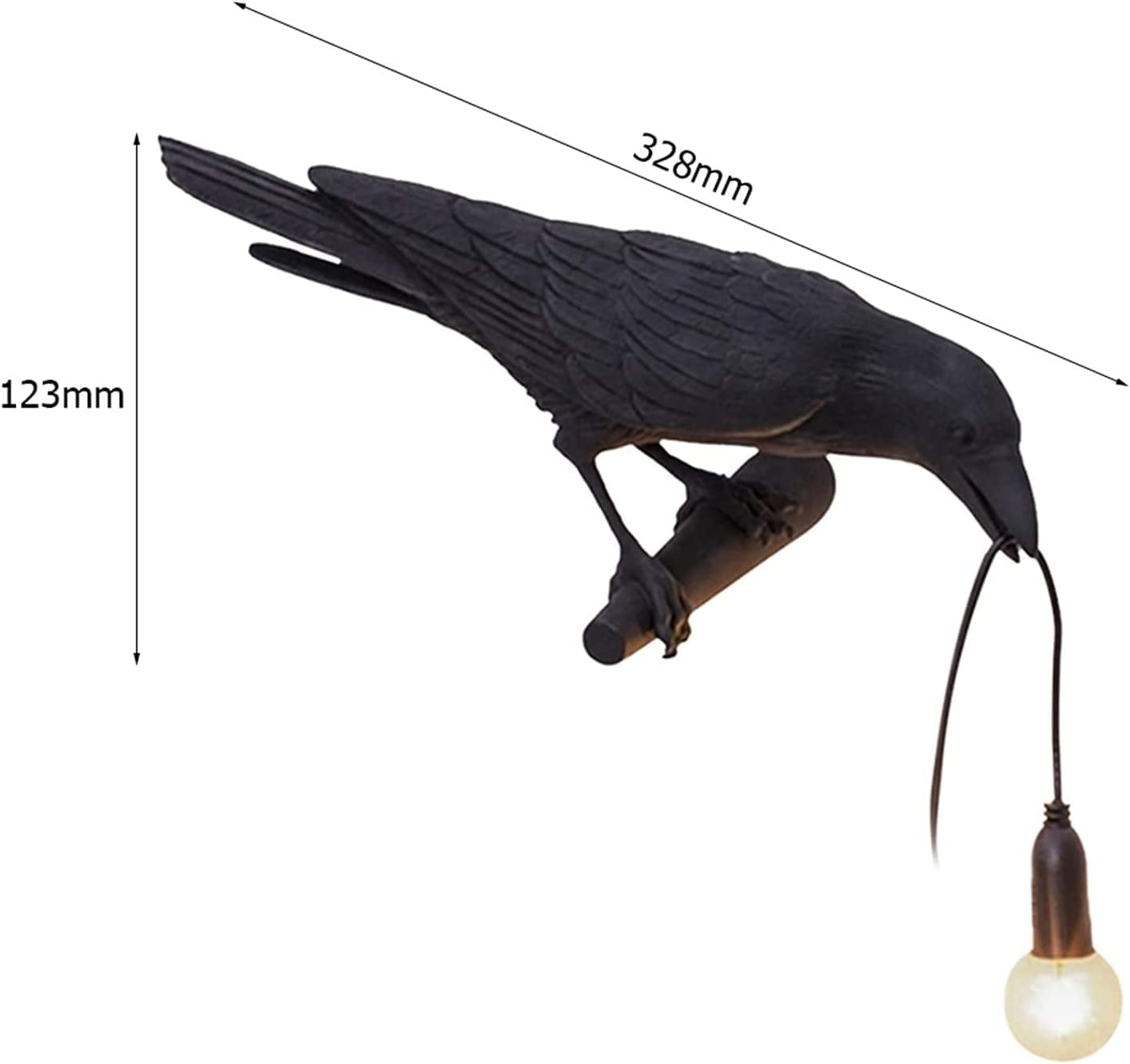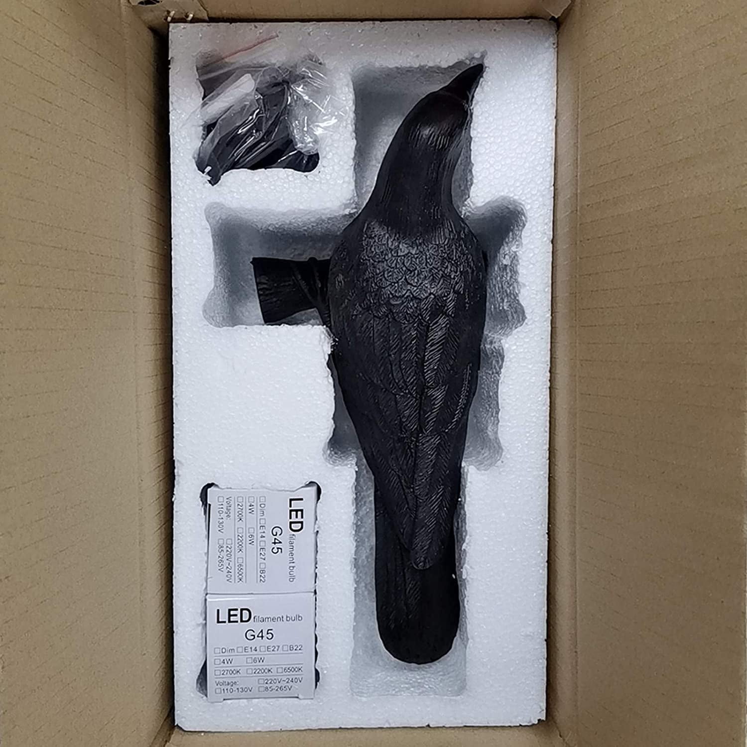 1)Using natural resin material carving technology, the bird shape artistic feeling is lifelike. The feet of the bird are strong and not easily broken. In order to prevent the bird lamp from being damaged during transportation, we have strengthened the packaging of the bulb, beak, and tail of the bird. Will put 2 bulbs on the box so that you can replace quickly.This unique and eye-catching wall lamp will add a charming color to your current lighting. 2)Size: 32.8×14.5×12.3cm, weight: 1.2kg, power cord is 1.5 meters long, the wire can be adjusted freely, and the bulb can be removed. Stable performance and long service life. No need to worry about fire hazards. Wall-mounted or desktop design is optional, easy to use and install. 3) Using the nature resin material carving technology, the black lamp had lifelike craw and body, it is not just a crow lamp, but also a artwork, it looks like the gothic raven holding his precious crystal to his family. 4)There are 2 bulbs for halloween crows, you can use them for a long time. And this table light is very easy to install and use.You just need to tighten the bulb first, plug in the power, and then turn on the switch on the line,the bulb will light up, easy to use and easy to install. 5) You can get a black lamp with 2 bulbs+ 1pcs plug in line with E14 base head.This cute crow lamp would be a great gifts to for Christmas, Valentine’s Day, Halloween and Thanksgiving .It also would be a good choice for table decor, goth room decor,cool room decor, black decor. If you have any issue about our product, you can contact us by "Ask a question" by our storefront, we will reply you within 24 hours and help you to solve the issue.