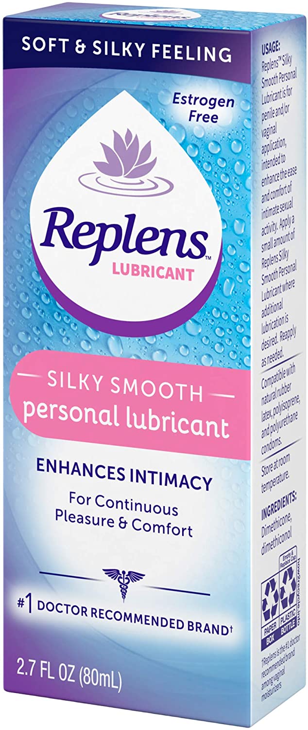 From the #1 Doctor Recommended Vaginal Moisturizer Brand, Replens Silky Smooth Personal Lubricant is a premium silicone lubricant that moisturizes and lubricates to enhance the ease and comfort of intimate sexual activity. Replens lubricant offers a soft & silky feeling, for continuous pleasure. Replens Personal Lubricant supplements the body’s natural lubrication and leaves skin soft and smooth. Replens Silky Smooth Personal Lubricant is for penile and/or vaginal application, intended to enhance the ease and comfort of intimate sexual activity. Apply a small amount of Replens Silky Smooth Personal Lubricant where additional lubrication is desired. Reapply as needed. Replens personal lubricant is compatible with natural rubber latex, polyisoprene, and polyurethane condoms. Pack of2