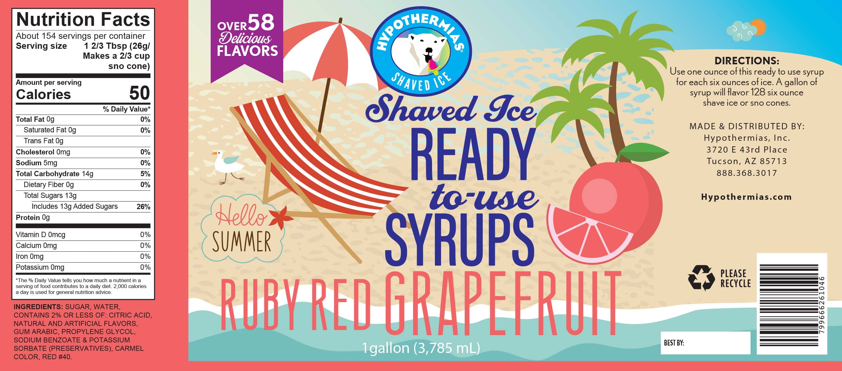 Delicious ruby red grapefruit shaved ice or snow cone ready to use syrup. Made in the USA. No mixing required. Made from the finest ingredients. We use authentic sugar for the sweetener in our syrups. Use 1 ounce of syrup to flavor 6 ounces of ice. This is professional, true to taste shaved ice flavor. Life of syrups is 6 months stored at room temperature out of sun light.