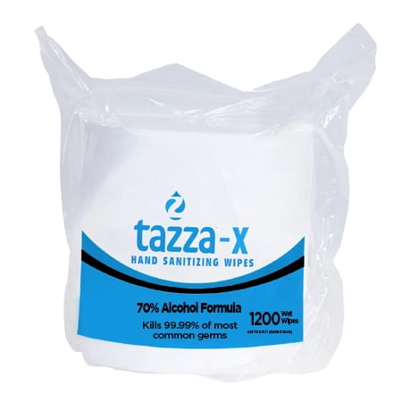 Tazza®-X Hand Sanitizg/Surface Cleaning Wipes are 70% Brand Alcohol Based. Gently sanitize hands and clean surfaces at the same time. These pre-moistened 70% Ethanol based alcohol formula wipes are safe for skin and surfaces – providing an effective and efficient way to clean while killing germs at the same time. Customers, employees, and others will appreciate the healthy setting as you safely kill 99.99% of the most common germs while they are on the go. Wipe size: 4.33 in. x 7.08 in. White. 1,200 wet wipes/bucket.