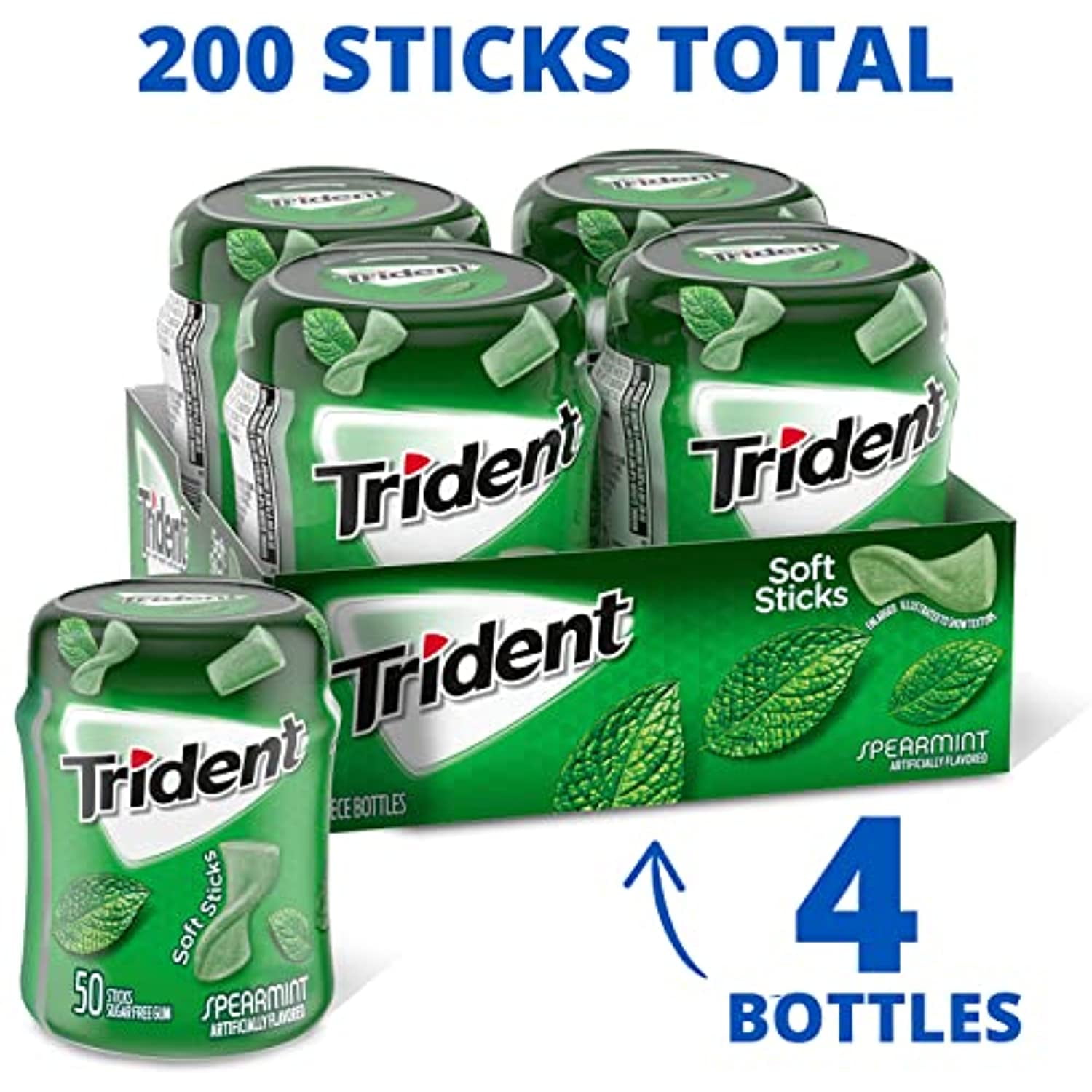 Trident Unwrapped Spearmint Sugar Free Gum, 4 Bottles Of 50 Pieces (200 Total Pieces)