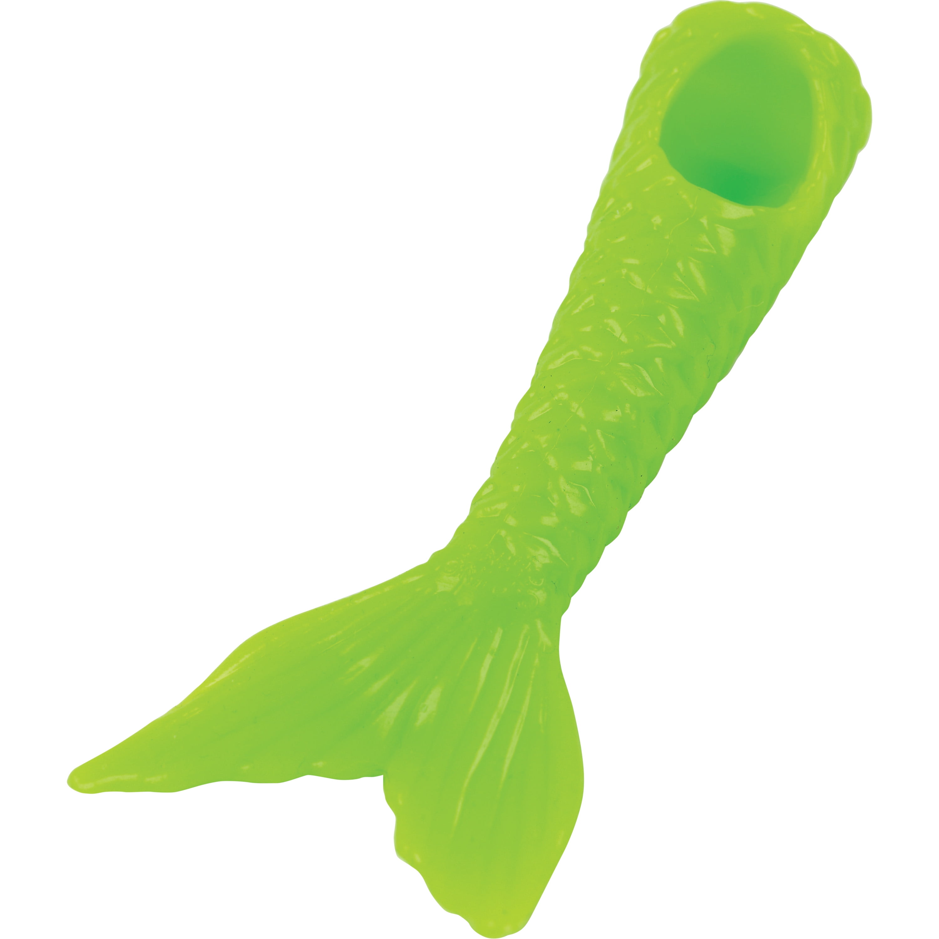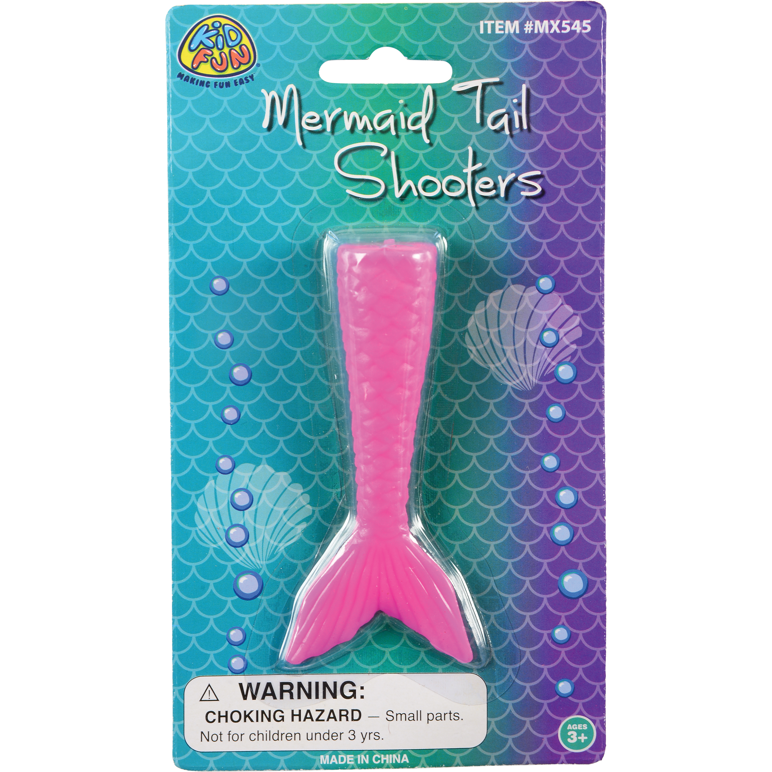 These mermaid shooters really fly far. Just stretch them over your fingers and shoot like a rubber band. Made of a stretchy rubber material.