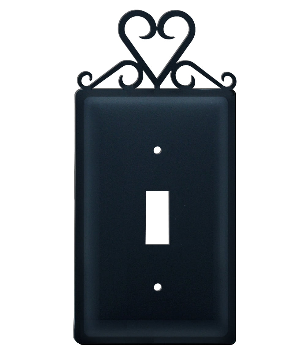 Add a touch of romance to walls while protecting utilities. Hand crafted black wrought iron heart light switch cover is a beautiful addition to any home or office decor. A finely sculpted and scroll design sits atop a rectangular light switch cover. Heart- SKU: VW819Manufacturer Part Number: ES-51