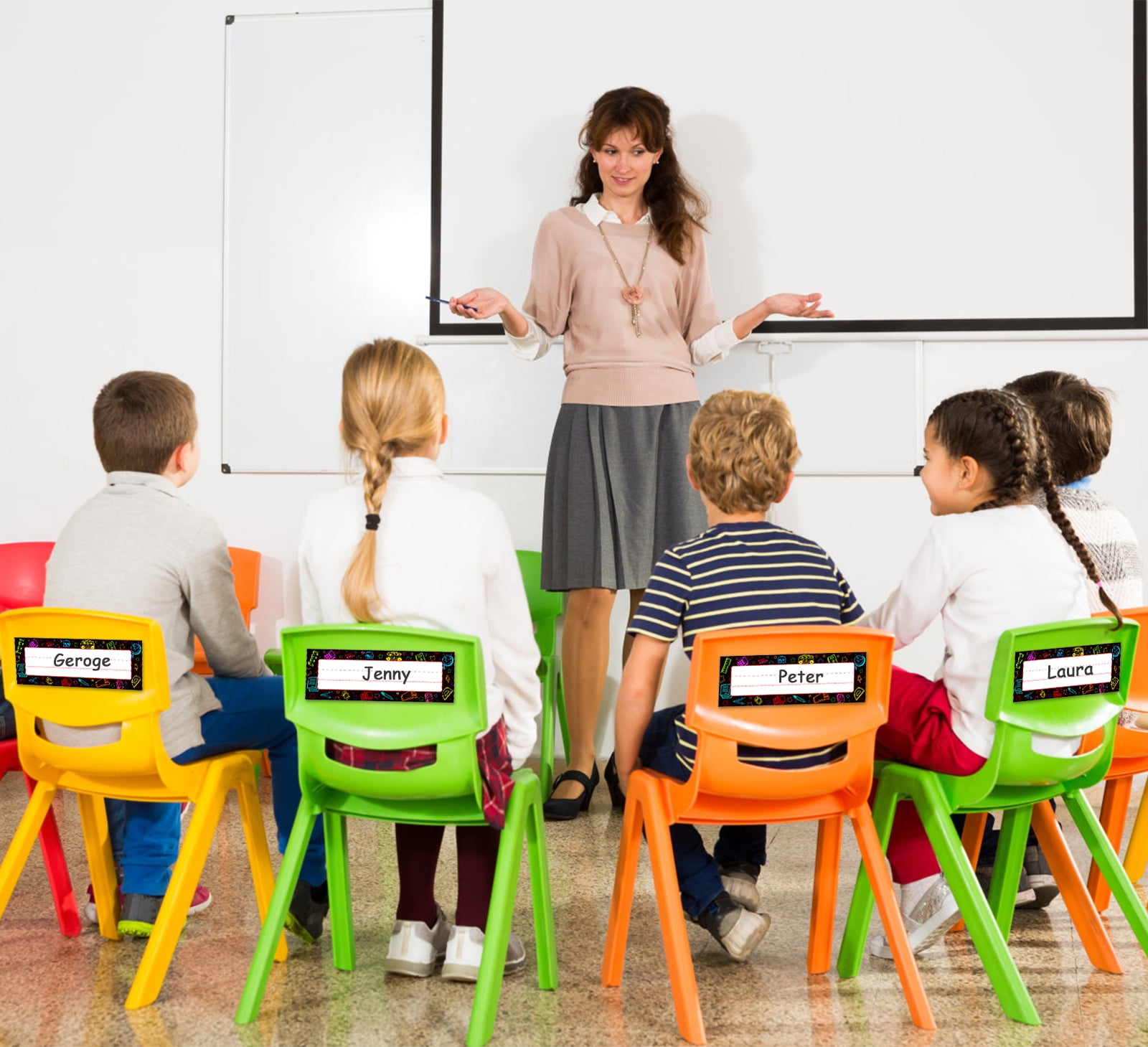 - 【Material】: The desk name plates for classroom are made of vinyl, self adhesive and waterproof, easy to write and install on the classroom desk chair, bulletin board and any other smooth surface.