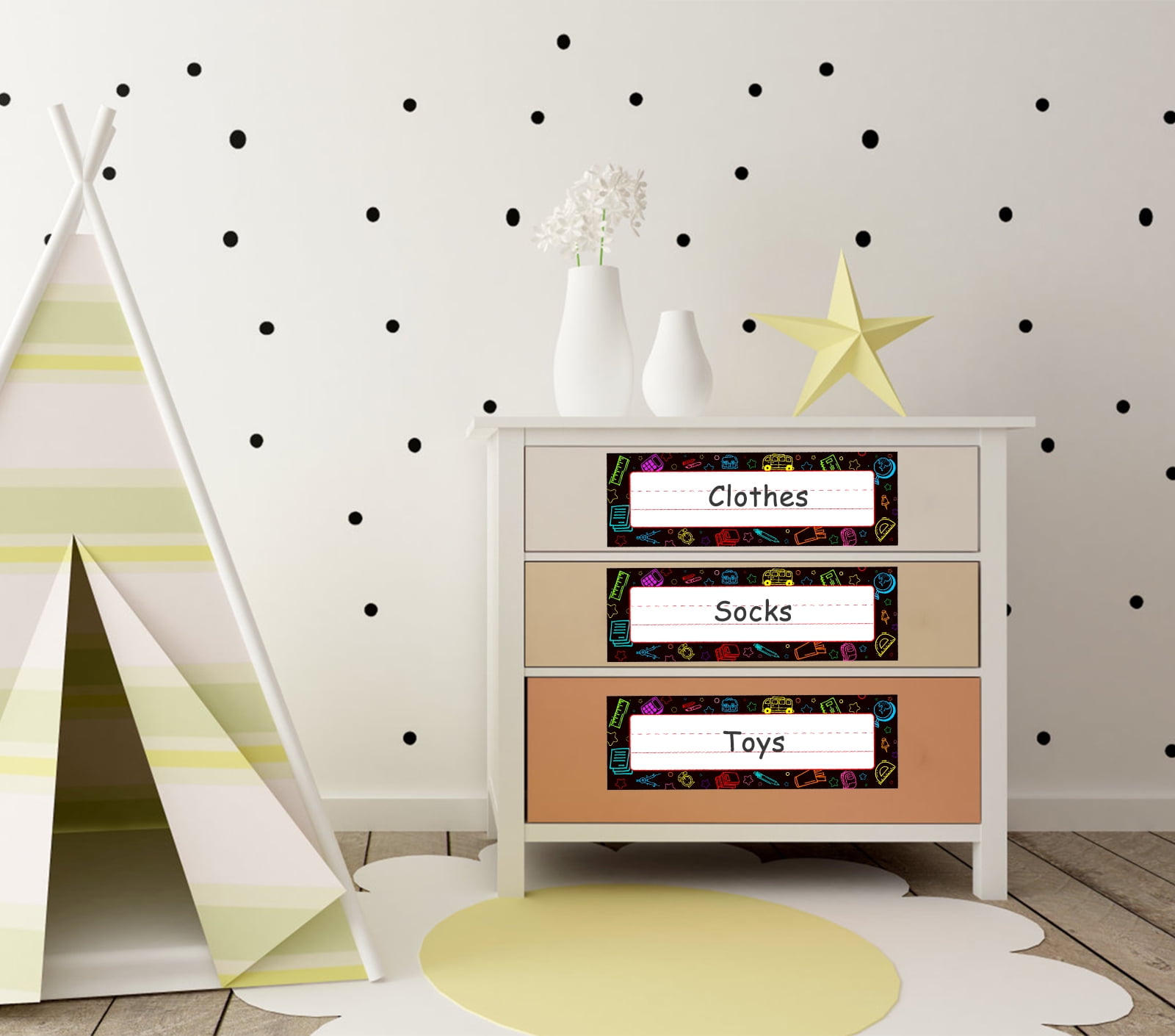 - 【Desk Name Plates for Classroom】:The name tags stickers is designed with black and back to school elements, attractive and sturdy desk name plates. Great name plates for students kids desks chairs.