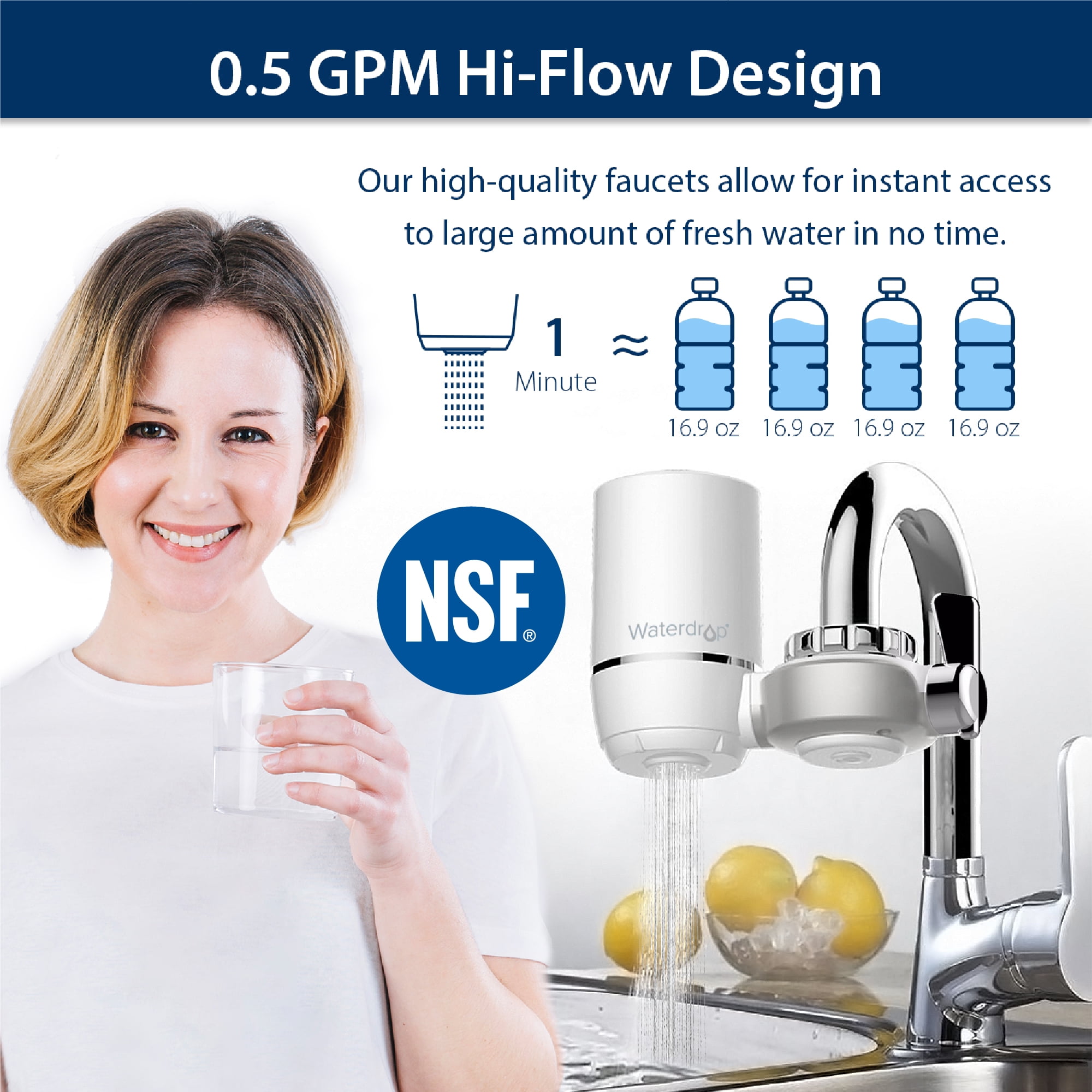 The faucet water filter system is designed with 0.5 gpm strong and steady flow rate. No trickle, no waiting. Enjoy crisp and refreshing water right now!