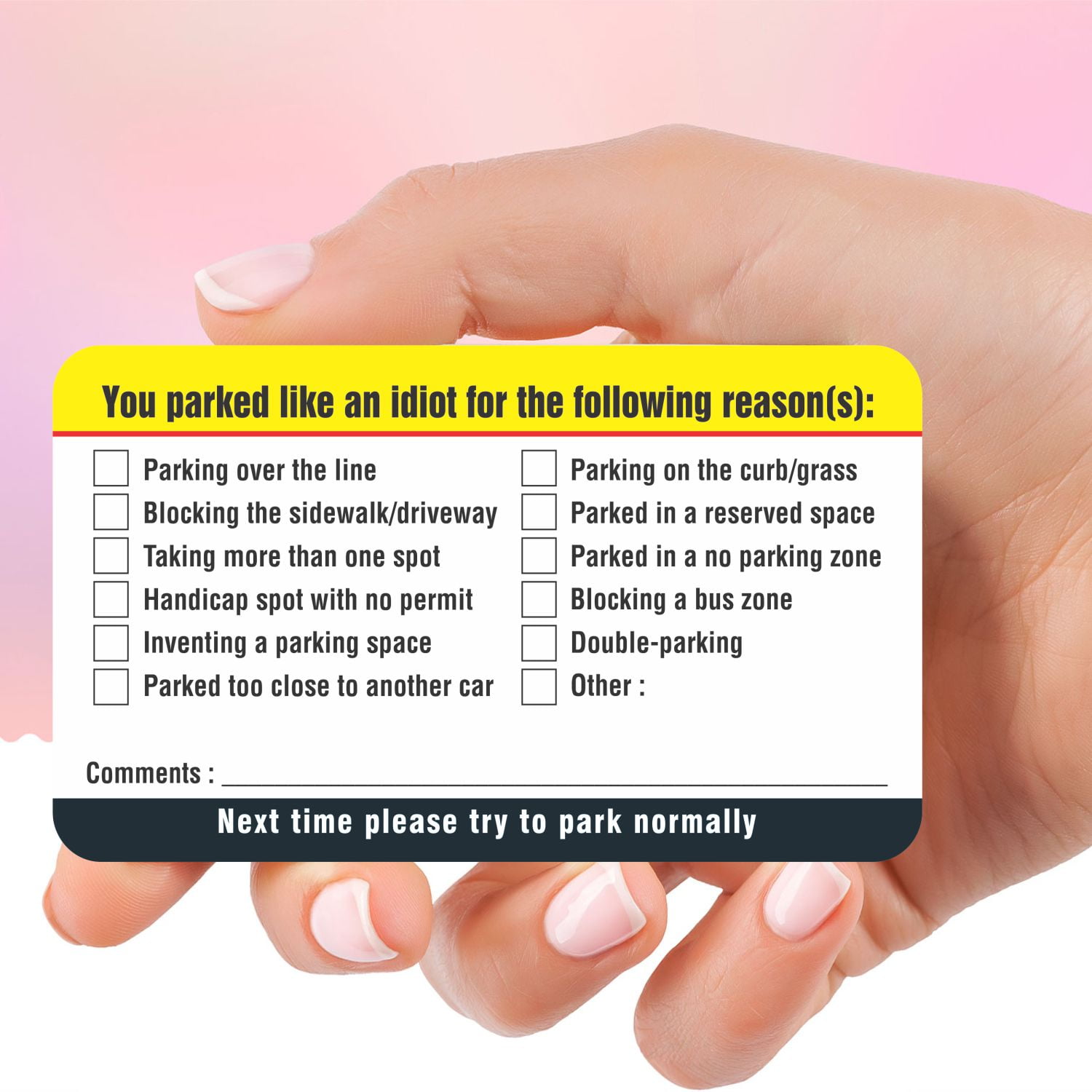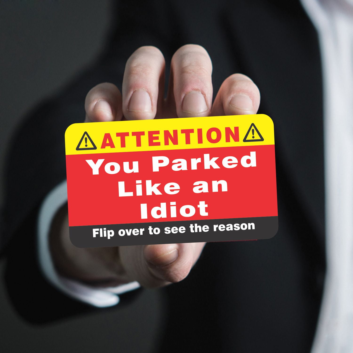 - VALUE PACK of 100 – You Parked Like an Idiot Cards, Smooth Surface, 14PT Thick Card stock Paper.