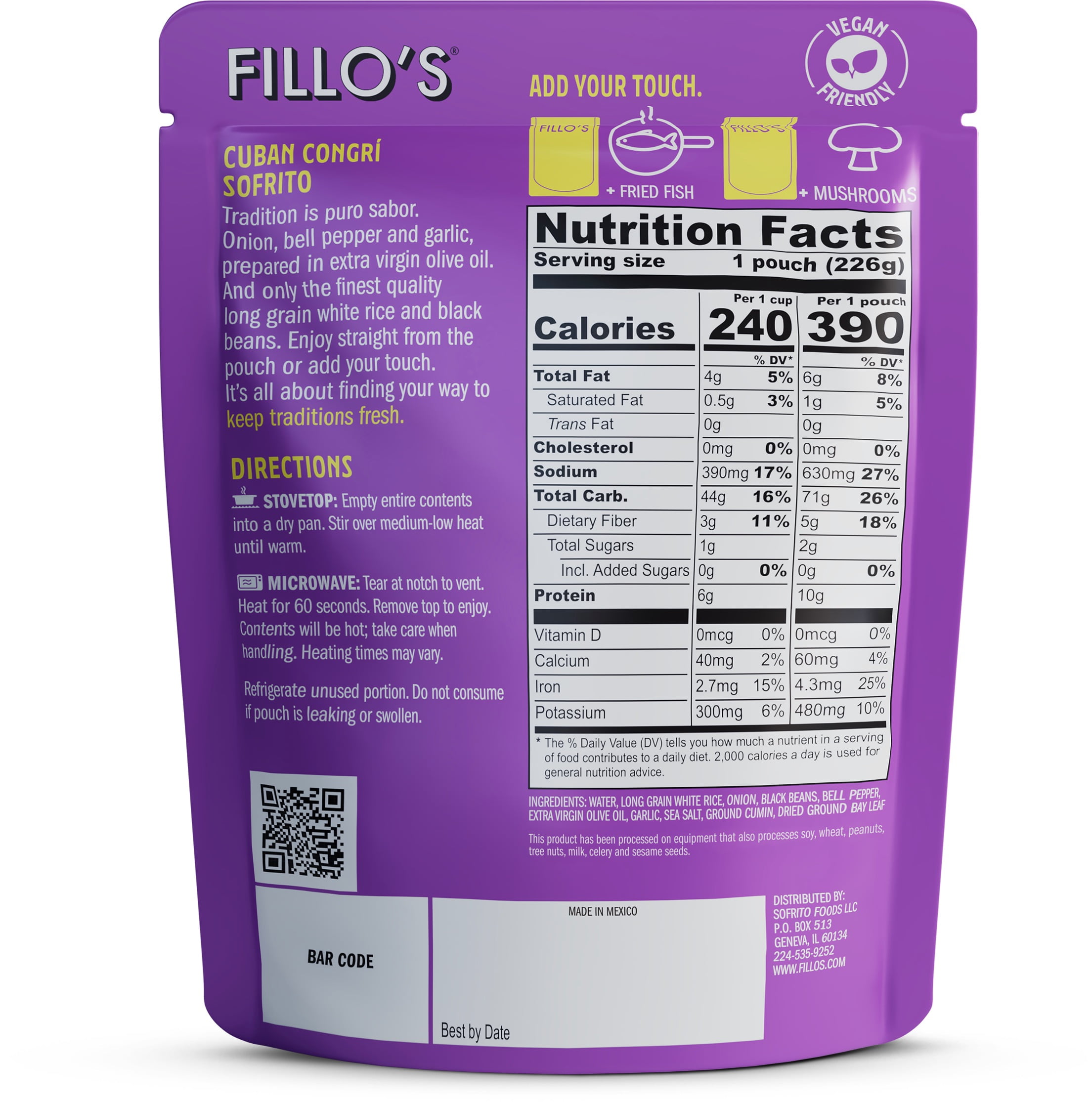 Fillo’s Cuban Congri Black Beans and Rice- Single Pouch, 8 oz