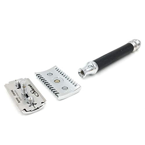 Parker 26C – Black Handle Three Piece OPEN COMB Double Edge Safety Razor & 5 Parker Premium Blades