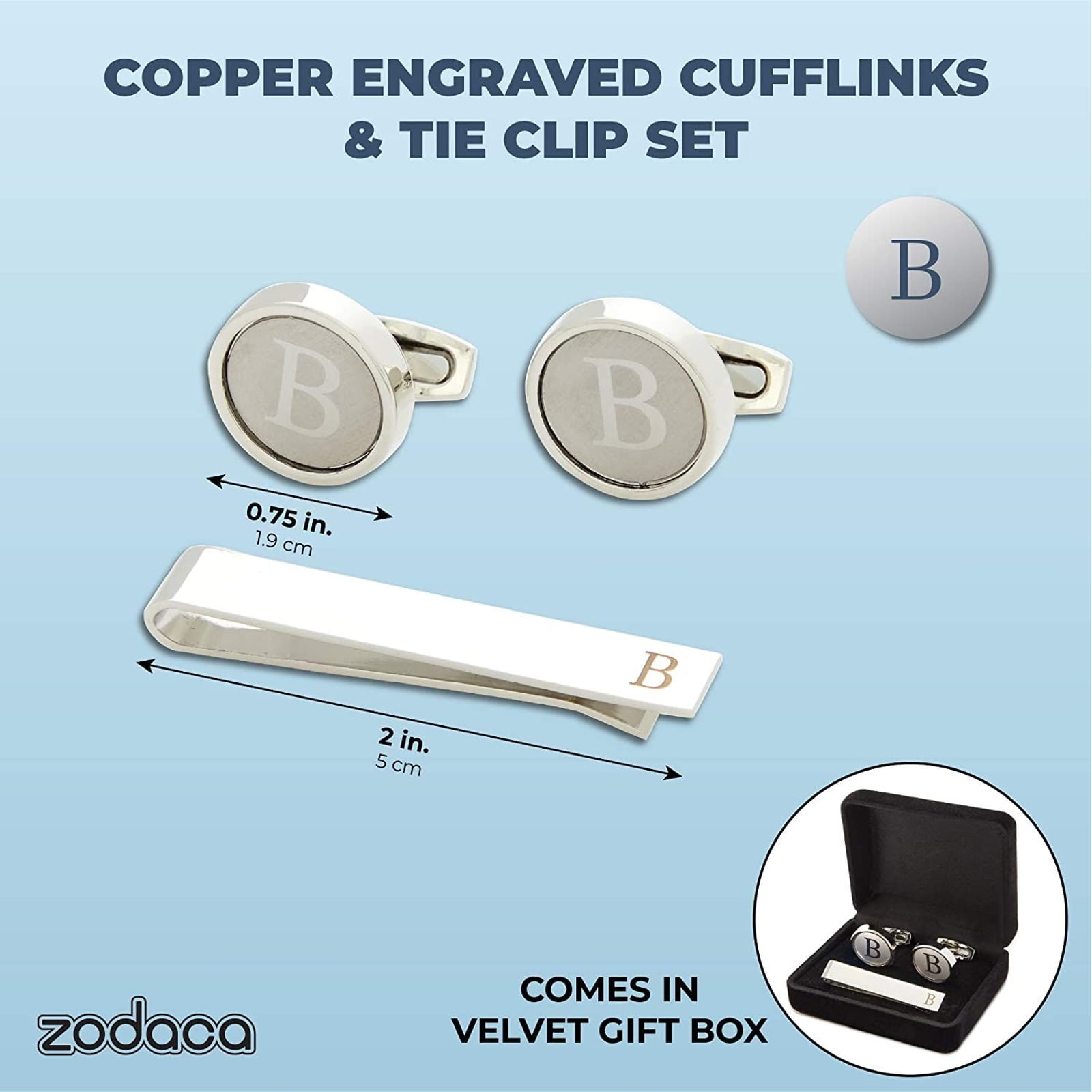 Men’s Initial Cufflinks Set and Tie Clips with Gift Box, Alphabet Letter Monogram B