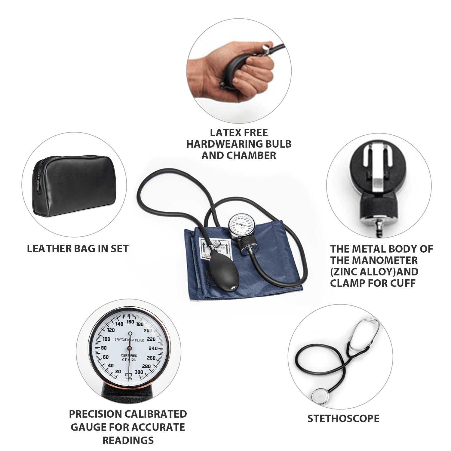 Blood Pressure Monitor Kit, Professional Manual Arm Type Sphygmomanometer with Adult Blue Cuff and Carrying Case