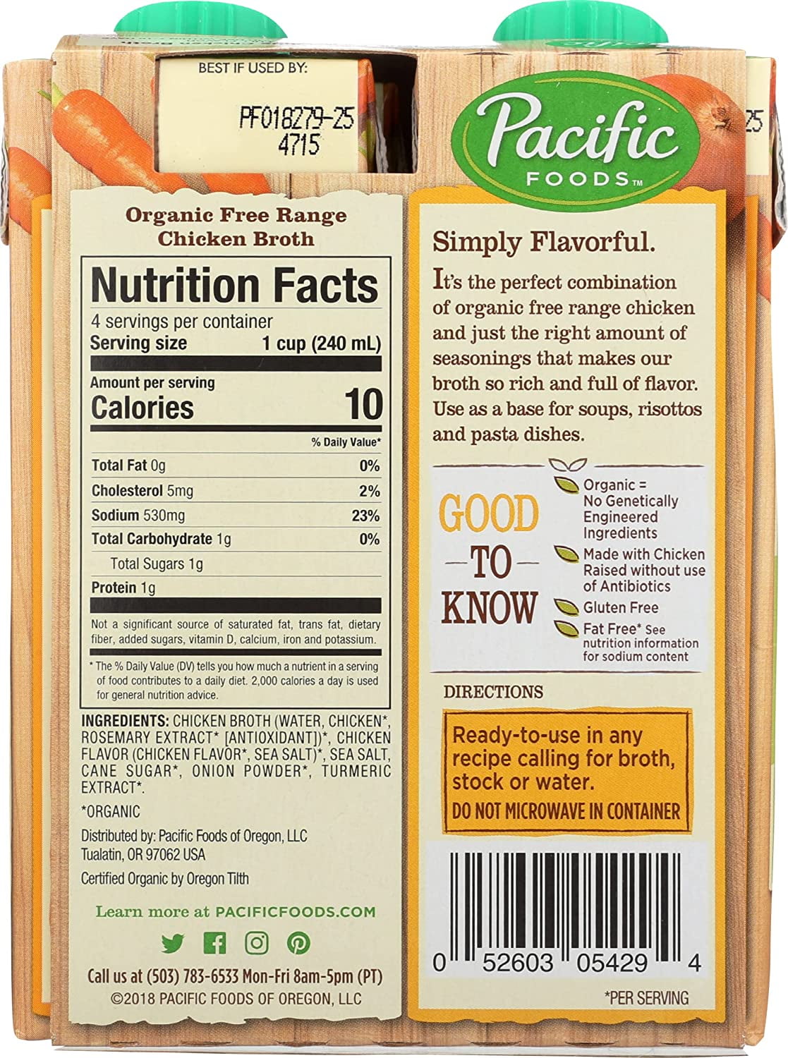 Pacific Foods Organic Free Range Chicken Broth 8 fl oz Pack of 2