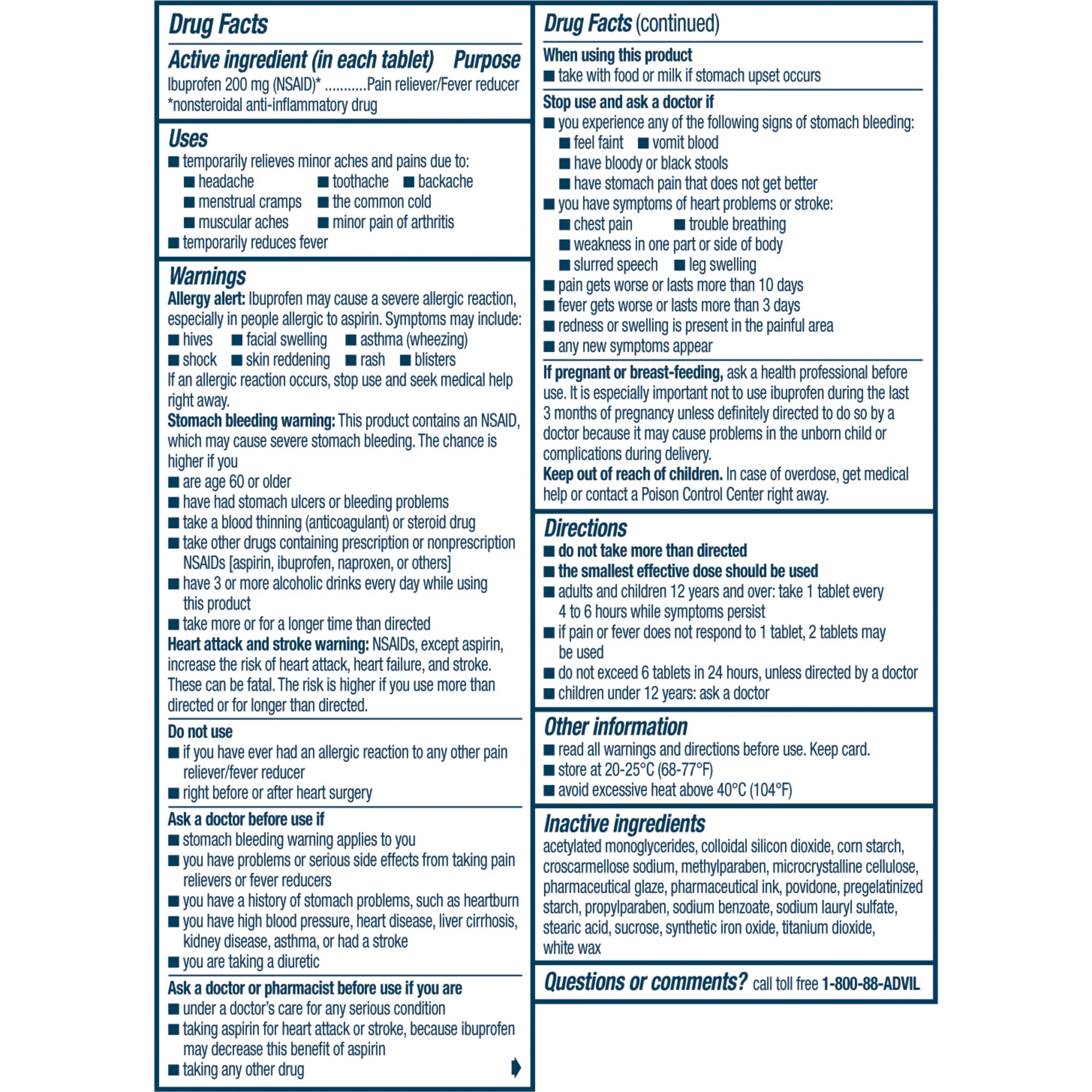 Advil Pain Reliever and Fever Reducer, Ibuprofen 200Mg for Pain Relief – 2X10 Coated Tablets
