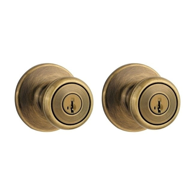Kwikset Tylo Antique Brass Entry Knobs ANSI/BHMA Grade 3 1-3/4′